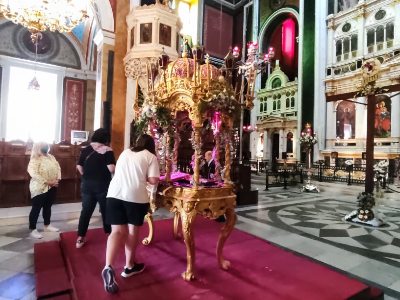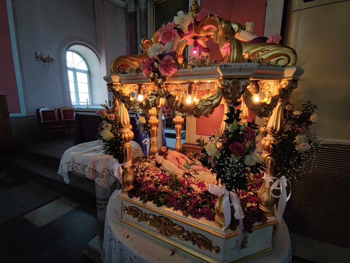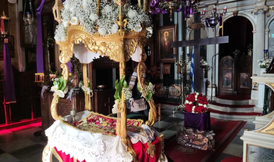 Μεγαλοπρέπεια και κατάνυξη στους ναούς της Σύρου σήμερα, Μεγάλη Παρασκευή, όπου από το πρωί κάτοικοι και εκατοντάδες επισκέπτες του νησιού συρρέουν προκειμένου να προσκυνήσουν τον επιτάφιο, συμμετέχοντας και τιμώντας το Θείο Δράμα.