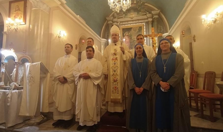Στη συνέχεια, ο Σεβ. π. Πέτρος Στεφάνου, παίρνοντας ξανά το λόγο, εξέφρασε την ικανοποίησή του που μετά από τέσσερα χρόνια προσπαθειών γίνεται επιτέλους πραγματικότητα η επιθυμία όλων να ενισχυθεί με ιερείς , μοναχούς και μοναχές το ποιμαντικό έργο της τοπικής εκκλησίας. Ευχήθηκε να αποδειχτεί ιστορική η συγκεκριμένη μέρα ώστε να ριζώσει και να μακροημερεύσει η νέα κοινότητα του τάγματος του Ενσαρκωμένου Λόγου και καλωσόρισε τους δύο ιερομόναχους , με καταγωγή από την Αργεντινή, τον πατέρα Φερνάντο ο οποίος θα αναλάβει καθήκοντα ως εφημέριος της ενορίας του Αγίου Σεβαστιανού και τον πατέρα Σέργιο,ο οποίος ξεκίνησε κι εκείνος ήδη μαθήματα ελληνικών ώστε σύντομα να αναλάβει ποιμαντικές ευθύνες. Τέλος, τους ευχήθηκε το Άγιο Πνεύμα να τους καθοδηγεί και να παραμένουν διαρκώς ενωμένοι με τον Ιησού.