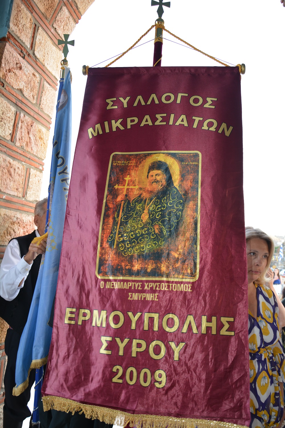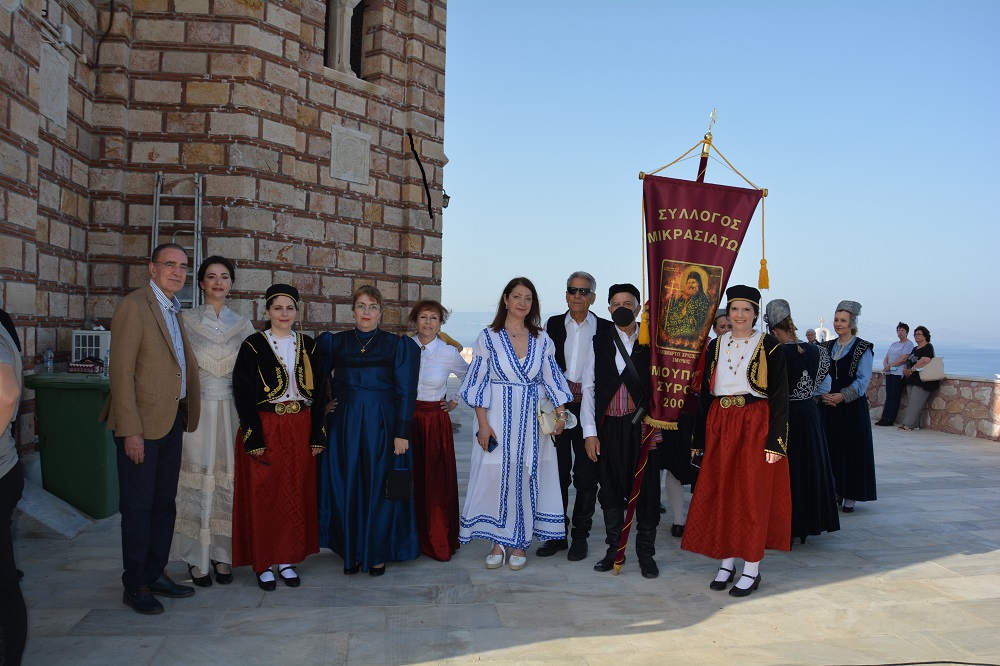 Ο Μητροπολίτης Σύρου κ. Δωρόθεος, ο Σεβασμιώτατος Μητροπολίτης Νέας Ιωνίας και Φιλαδελφείας κ. Γαβριήλ, ο Θεοφιλέστατος Επίσκοπος Ευρίπου κ. Χρυσόστομος, ο ιερός κλήρος, βουλευτές Κυκλάδων κα Α.Μονογυιού και κος Φ.Φόρτωμας, ο δήμαρχος Σύρου -Ερμούπολης κ. Ν. Λειβαδάρας, ο επικεφαλής της μείζονος μειοψηφίας του Δήμου Σύρου-Ερμούπολης, κ. Αλέξης Αθανασίου, περιφερειακοί και δημοτικοί σύμβουλοι, εκπρόσωποι του στρατού, του ναυτικού, του λιμενικού σώματος, της ελληνικής αστυνομίας, της πυροσβεστικής υπηρεσίας, της Ακαδημίας εμπορικού ναυτικού Σύρου, μέλη των συλλόγων Μικρασιατών Ερμούπολης Σύρου και Βορειοελλαδιτών Σύρου " Ο Εύξεινος Πόντος", με παραδοσιακές ενδυμασίες και τα λάβαρά τους, το Λυκείου Ελληνίδων και η Φιλαρμονική του Δήμου Σύρου -Ερμούπολης, βρέθηκαν στον προαύλιο χώρο του ιερού ναού για να τιμήσουν την ιερή εικόνα.
