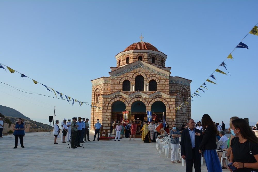 Κλείνοντας, ο κ. Δωρόθεος ευχαρίστησε όσους ανταποκρίθηκαν στην πρόσκληση και τίμησαν με την παρουσία τους την ξεχωριστή αυτή μέρα για το νησί, η οποία έχει αναγνωρισθεί ως τοπική εορτή μέσω βασιλικού διατάγματος από το 1937. Στη συνέχεια, κι αφού η ιερή εικόνα, ο κλήρος και οι πιστοί μεταφέρθηκαν στο εσωτερικό της εκκλησίας, τελέσθηκε Τρισαρχιερατικός Εσπερινός.