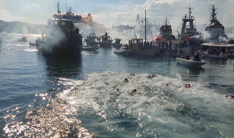 Υπό το λαμπερό φως του ήλιου και την “ακτινοβολία” του Αιγαίου πραγματοποιήθηκε φέτος ο εορτασμός των Θεοφανίων στην πρωτεύουσα των Κυκλάδων, με τον μητροπολίτη Σύρου Δωρόθεο Β΄ να απευθύνει αισιόδοξο μήνυμα προς το πλήθος που συγκεντρώθηκε στο λιμάνι της Ερμούπολης για να παρακολουθήσει τον αγιασμό των υδάτων και τη ρίψη του Τιμίου Σταυρού.