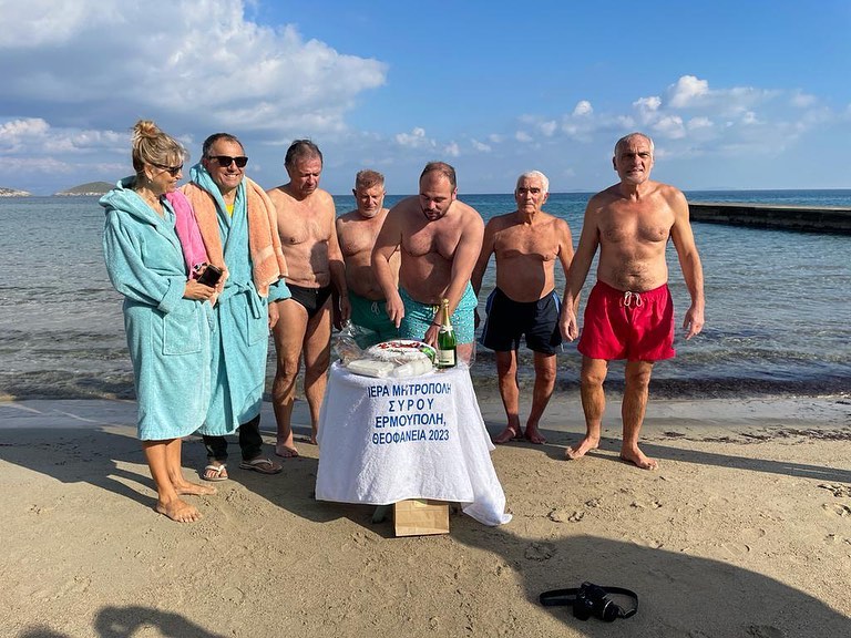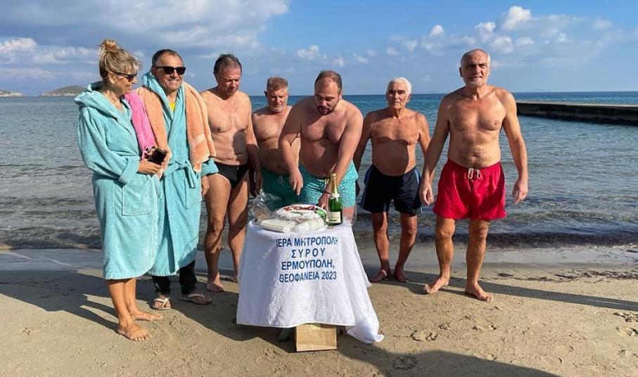 Λιτές τελετές για τον αγιασμό των υδάτων και τη ρίψη του Τιμίου Σταυρού πραγματοποιήθηκαν και στα χωριά της Σύρου, με τη συμμετοχή ανδρών αλλά και μίας γυναίκας, που με τόλμη έπεσαν στην κρύα θάλασσα. Ειδικότερα, στην Ποσειδωνία της Σύρου, εορτάστηκαν τα Θεοφάνια πρωινές ώρες, όπως κάθε χρόνο, με τον συμπολίτη μας, Παναγιώτη Παυλόπουλο να πιάνει στον Σταυρό. Στην Ποσειδωνία βρέθηκαν ορισμένοι αυτοδιοικητικοί, όπως μεταξύ άλλων και η χωρικά υπεύθυνη αντιδήμαρχος, Αγγελική Πρίντεζη.