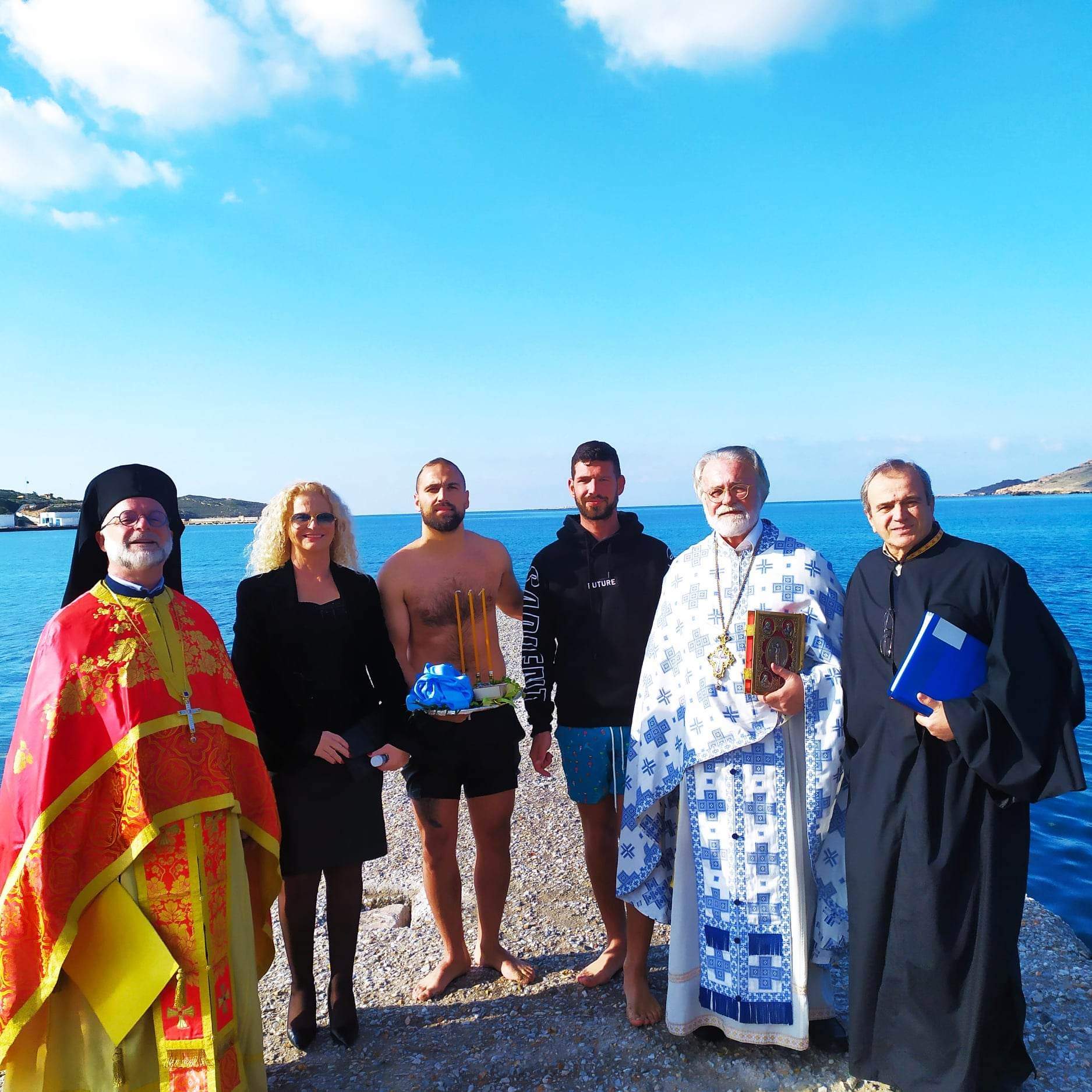 Με γενναιότητα, αρκετοί νέοι του νησιού κολύμπησαν στη θάλασσα εν μέσω χειμερινής περιόδου, τιμώντας τη χριστιανική παράδοση, ενώ ο Θεόδωρος Λουδάρος έπιασε τον Σταυρό, κατά την καθιερωμένη προσπάθεια για την ανάσυρσή του.