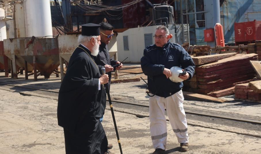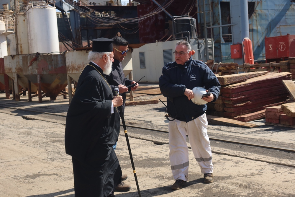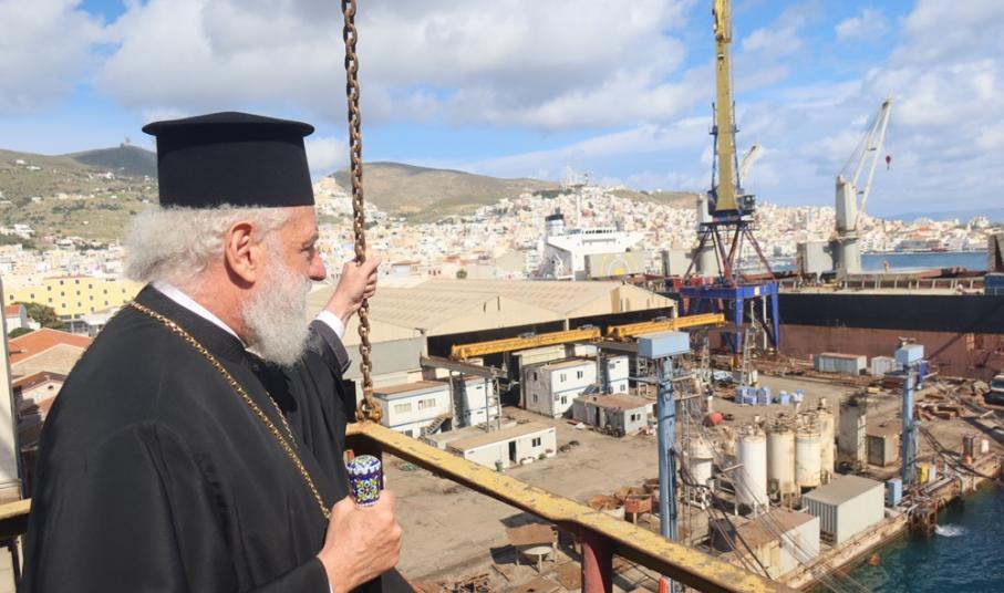 Ανακοίνωση της Ιεράς Μητρόπολης Σύρου για τον αγιασμό πλοίου στις εγκαταστάσεις του Νεωρίου από τον μητροπολίτη, Δωρόθεο Β΄.