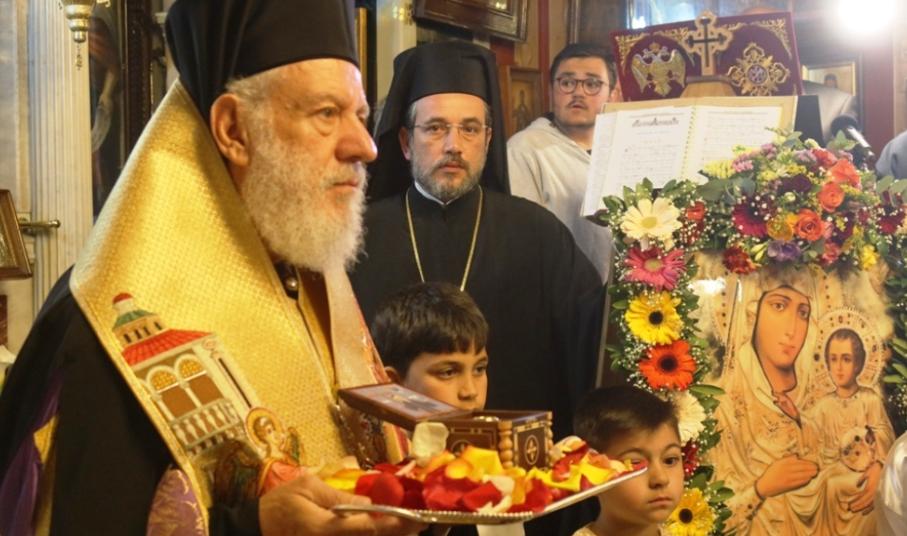 Μετά την ειδική Ακολουθία επί τη υποδοχή του ιερού Λειψάνου, το οποίο εναπετέθη σε περίτεχνο μαρμάρινο προσκυνητάριο, έμπροσθεν της Εικόνος του, προς διηνεκή ευλογία των πιστών, τελέσθηκε ο Κατανυκτικός Εσπερινός, προεξάρχοντος του μητροπολίτη Δωροθέου Β', ο οποίος με εγκάρδιους λόγους συνεχάρη τον Εφημέριο του Ναού, Πρεσβύτερο Νικόλαο Χαρούλη για την εύορκο και ευδόκιμο διακονία του.