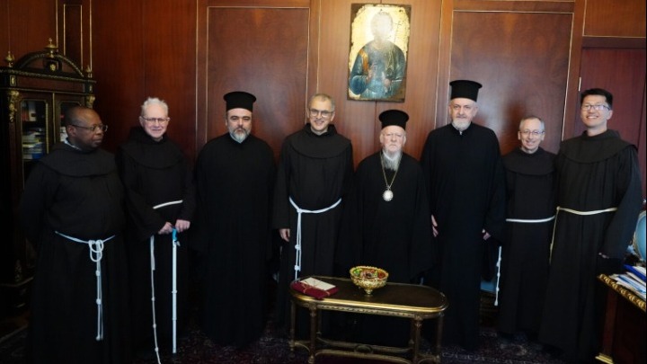 Ο Οικουμενικός Πατριάρχης Βαρθολομαίος, δέχθηκε σήμερα από τη Ρώμη, τον Massimo Fusarelli, Αρχηγό του Τάγματος των Φραγκισκανών, μαζί με μέλη της περί αυτόν Αδελφότητας και συνεργάτες του, με την ευκαιρία της παραχώρησης προς το Οικουμενικό Πατριαρχείο, του ιερού ναού Santa Maria, στη Σμύρνη, ο οποίος ανήκει στο εν λόγω Τάγμα, για τις ανάγκες της Ιεράς Μητροπόλεως Σμύρνης.