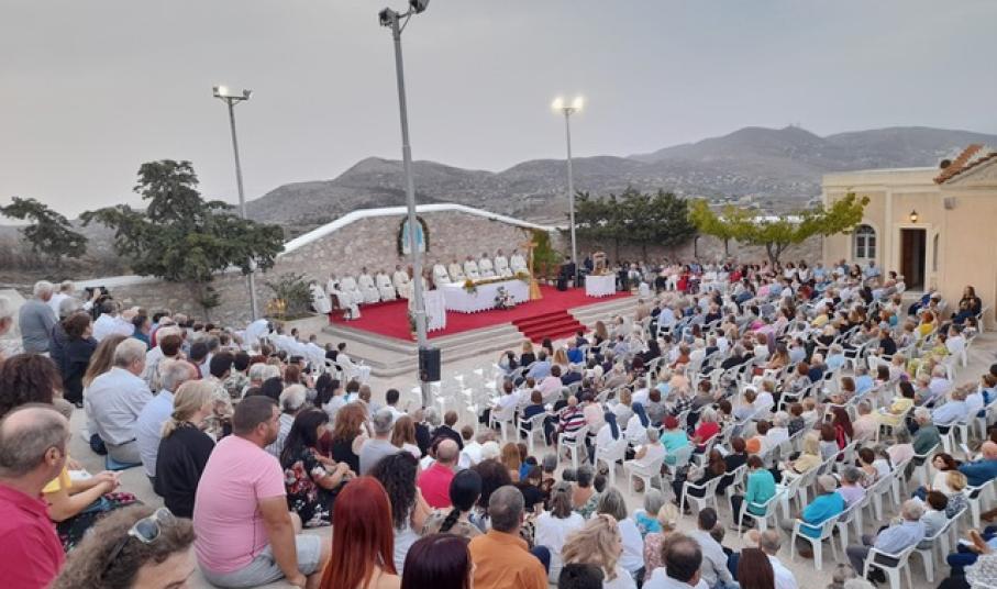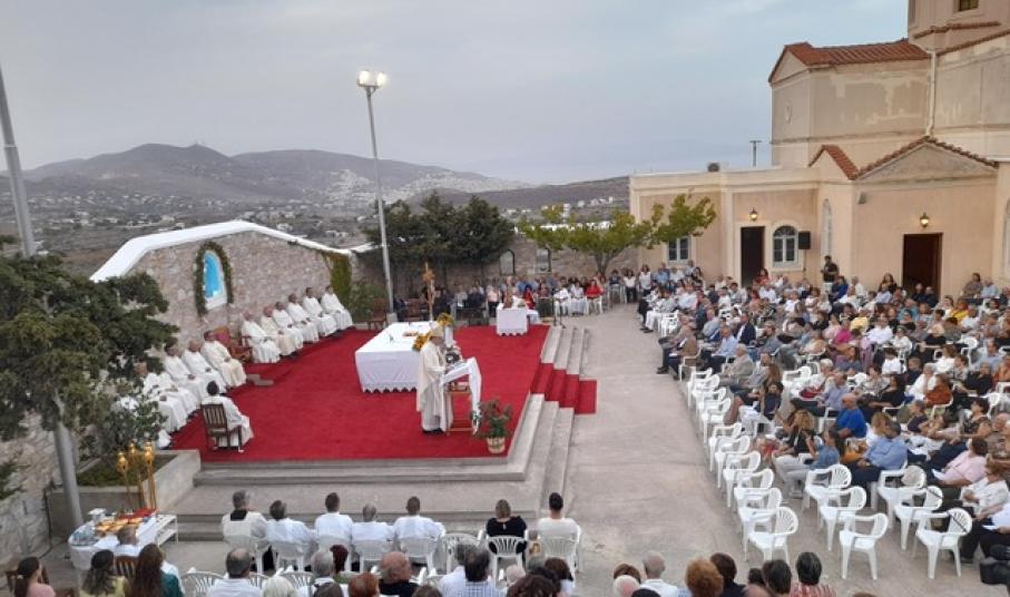 Πολυαρχιερατικό Συλλείτουργο, πραγματοποιήθηκε το απόγευμα της Κυριακής στον ιερό ναό της Παναγίας Φανερωμένης, στο οποίο προΐστατο ο καθολικός επίσκοπος, Σεβασμιότατος Πέτρος Στεφάνου, ενώ συμμετείχαν ο αποστολικός Νούντσιος στην Ελλάδα, Αρχιεπίσκοπος, Jan Romeo Pawlowski, ο Σεβασμιώτατος Αθηνών, Σεβαστιανός Ροσσολάτος, ο Σεβασμιώτατος Τήνου, Νάξου και παντός Αιγαίου, Νικόλαος Πρίντεζης, καθώς και εκπρόσωπος της Ιεράς Μητροπόλεως Σύρου.