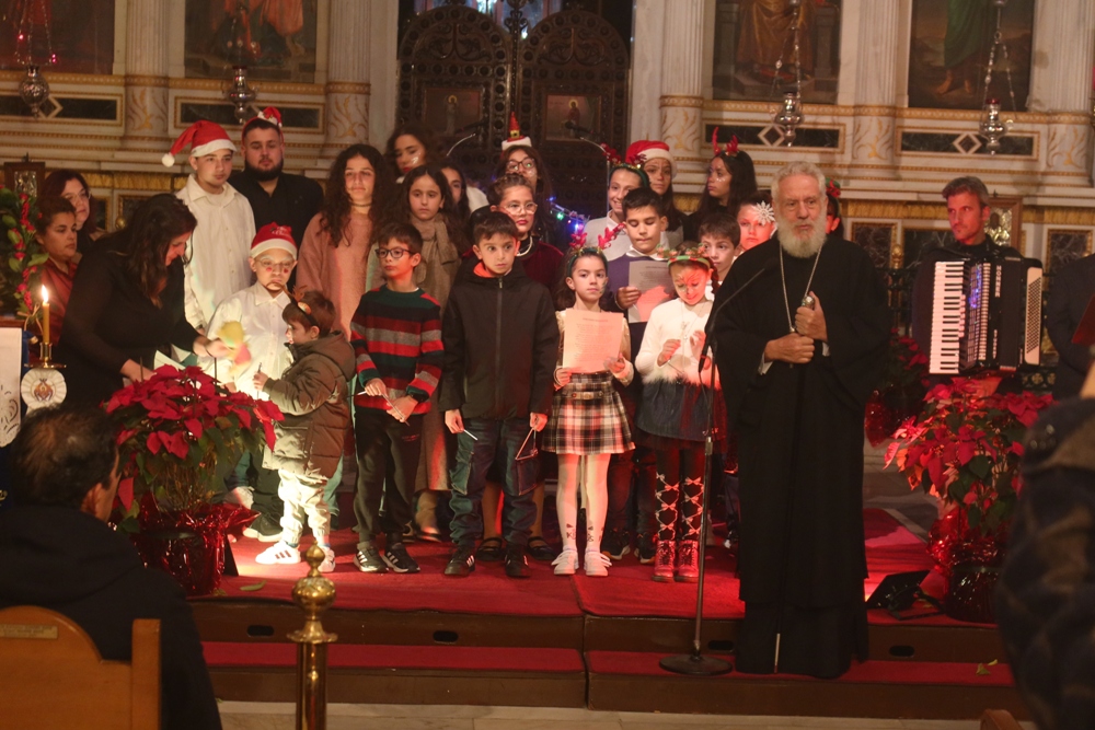 Τα παιδιά των Κατηχητικών, υπό την καθοδήγηση του Κατηχητού τους και Προϊσταμένου του Ναού Αρχιμ. Βενέδικτου Φραγκογιάννη , και των Κατηχητών- βοηθών του, παρουσίασαν διδακτικά δρώμενα, Χριστουγεννιάτικα ποιήματα και τραγούδια, με συνοδεία αρμονίου και ακορντεόν.