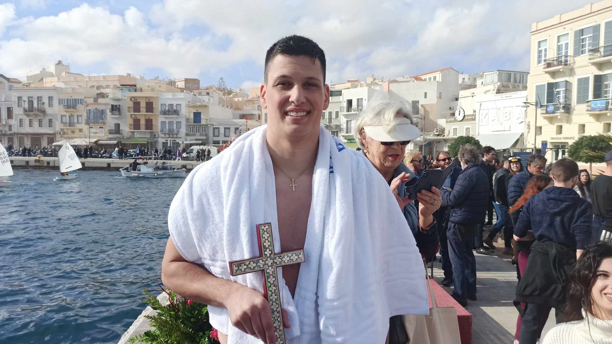 Ο τυχερός που έπιασε τον σταυρό ήταν ο Μανώλης Μουλίδης, ο οποίος κατενθουσιασμένος τον αφιέρωσε στη μικρή βαφτισιμιά του, η οποία, όπως είπε, το τελευταίο χρονικό διάστημα αντιμετώπισε αρκετά προβλήματα.