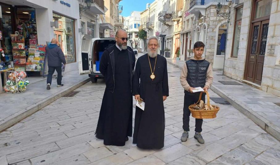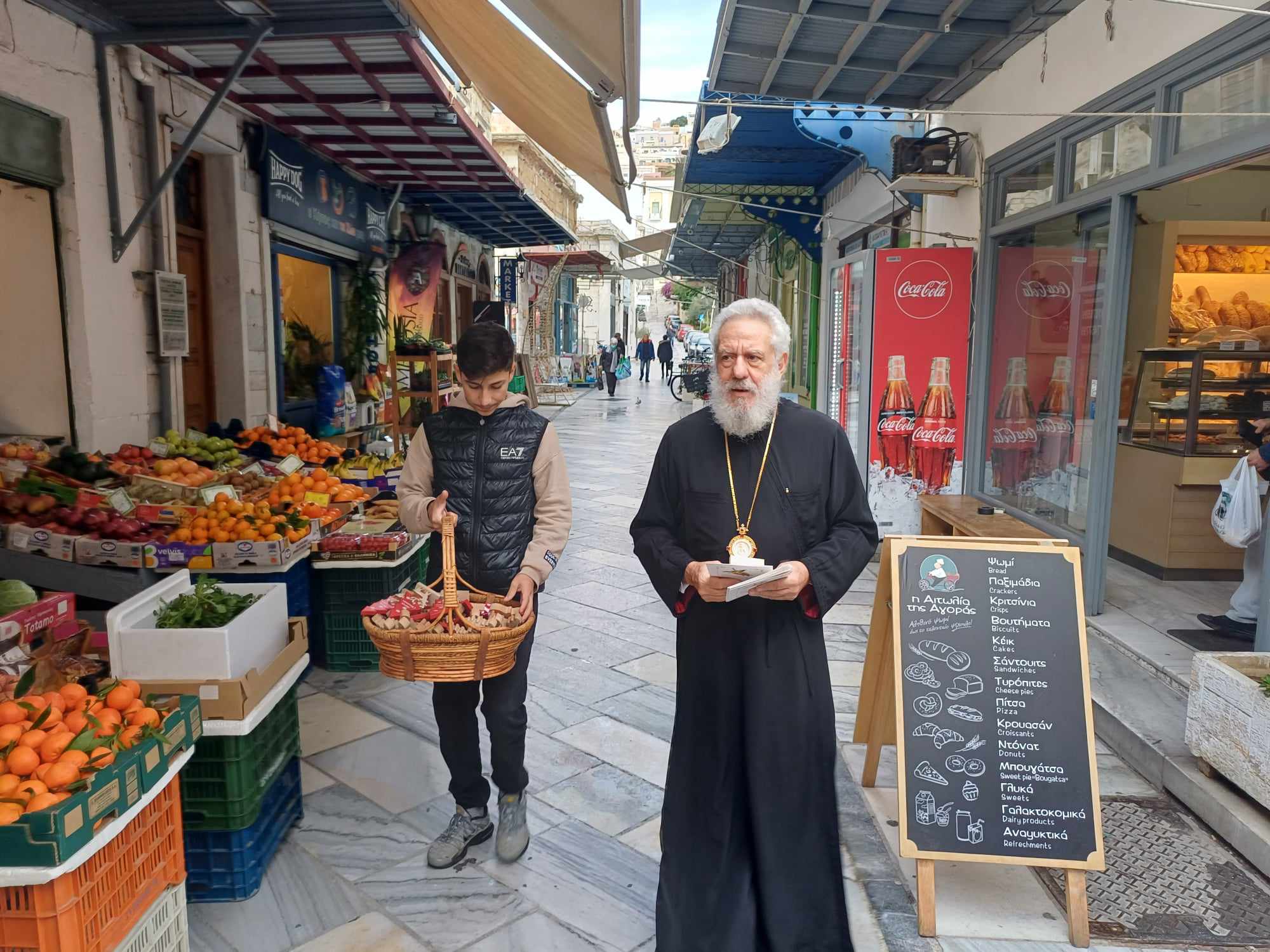 Ο μητροπολίτης Σύρου Δωρόθεος B' πραγματοποίησε την καθιερωμένη περιοδεία του στην αγορά της Ερμούπολης