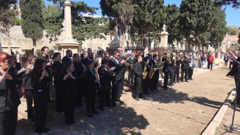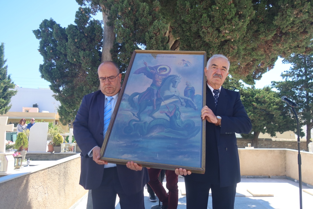 Μετά το πέρας της Θείας Λειτουργίας έλαβε χώρα λιτανεία της θαυματουργού Εικόνος του ΑγίουΓεωργίου, στο παρακείμενο του Ναού Κοιμητήριο, ενώ η Φιλαρμονική του Δήμου Σύρου-Ερμούπολης παιάνιζε εόρτια εμβατήρια.