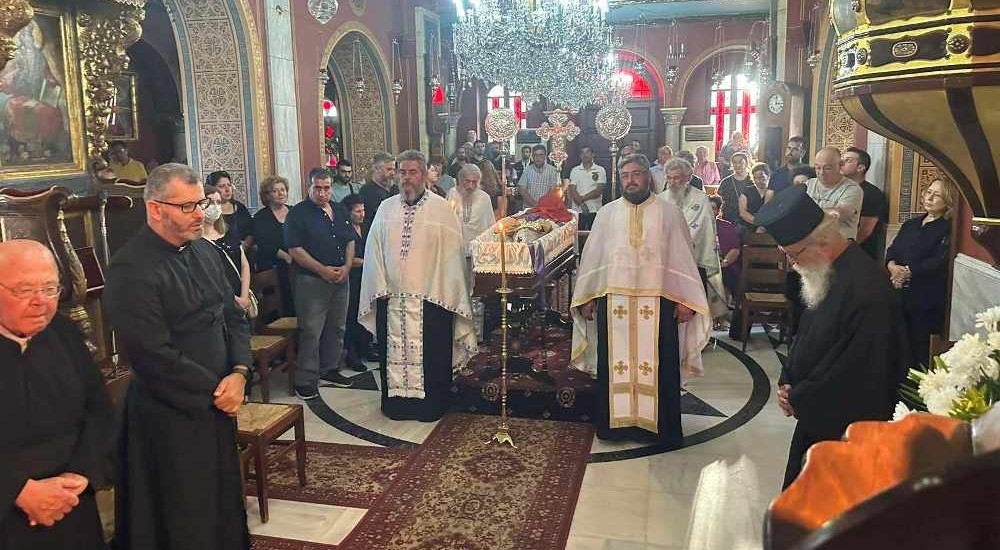 Ο ευσεβής λαός της Σύρου, εκπρόσωποι τοπικών αρχών, εκπρόσωποι του Επισκόπου Καθολικών Σύρου Σεβ. κ. Πέτρου, οικογενείς του και σύμπας ο ιερός κλήρος της Σύρου, εξόδευσαν, σε ατμόσφαιρα βαθιάς κατ’ άνθρωπον συγκινήσεως, τον αοίδιμο πρωτοπρ. Δημήτριο Τρουμπετάκη, και προσευχήθηκαν για την ανάπαυση της ψυχής του στην αγκαλιά του Θεού.