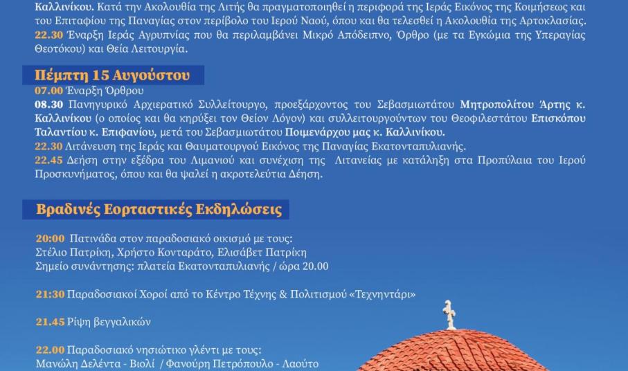 Το πρόγραμμα εορτασμού του Δεκαπενταύγουστου για την Πάρο, ανακοίνωσε ο Δήμος.