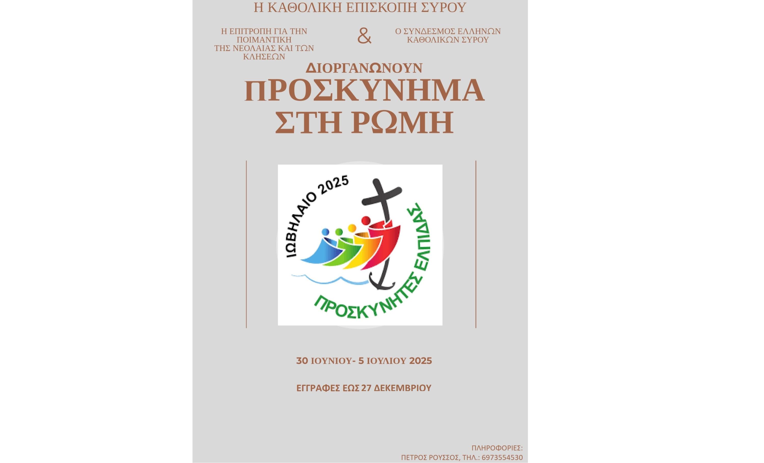 Για εγγραφές/πληροφορίες: 697 3554 530 - Πέτρος Ρούσσος, Πρόεδρος Συνδέσμου Ελλήνων Καθολικών Σύρου