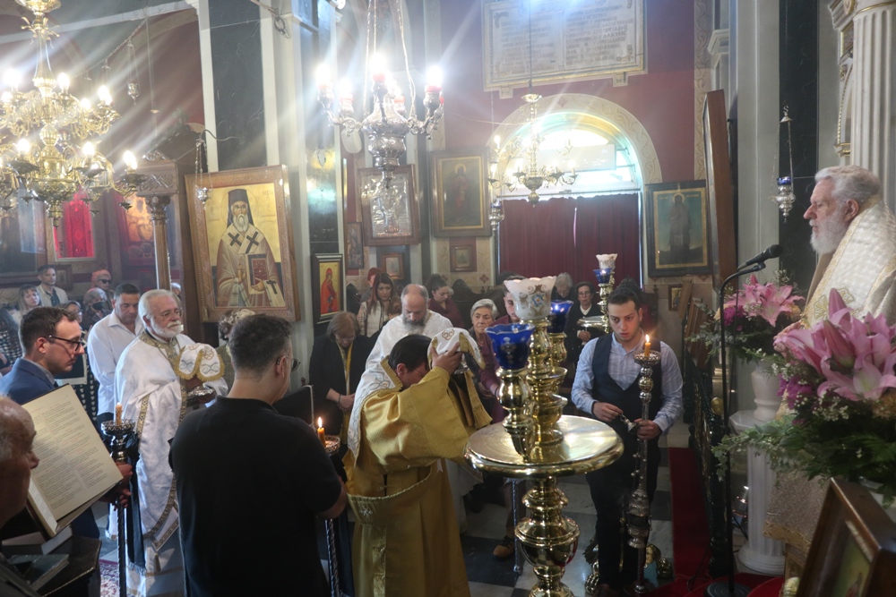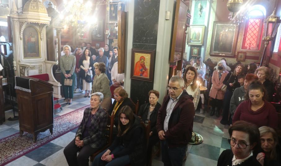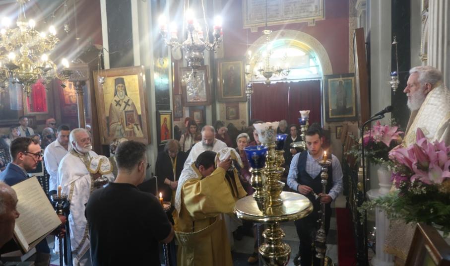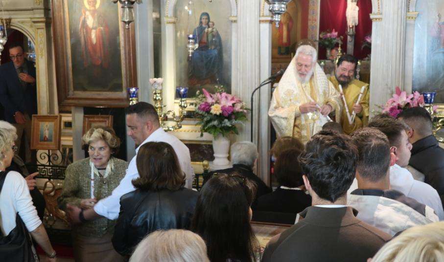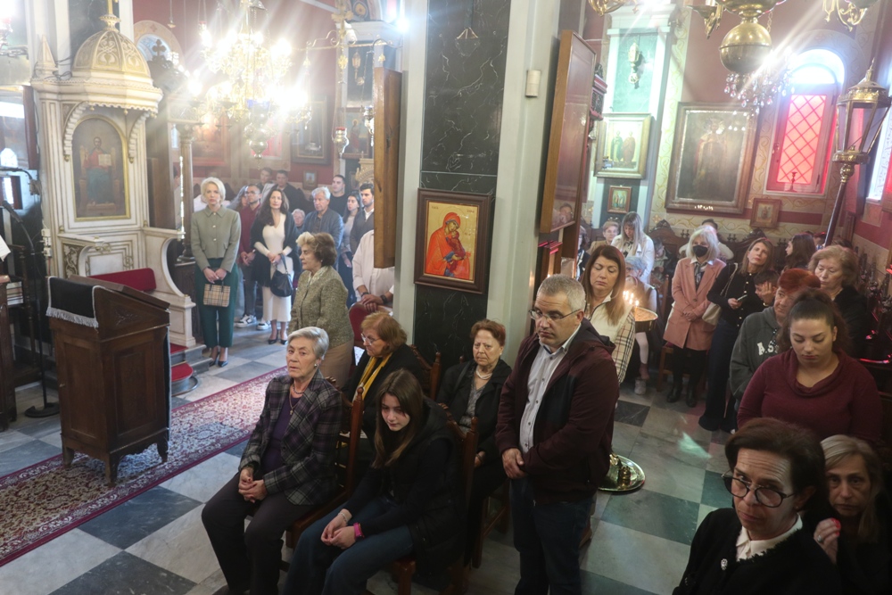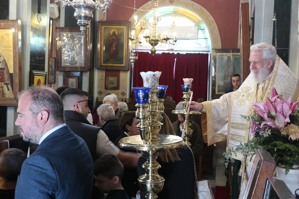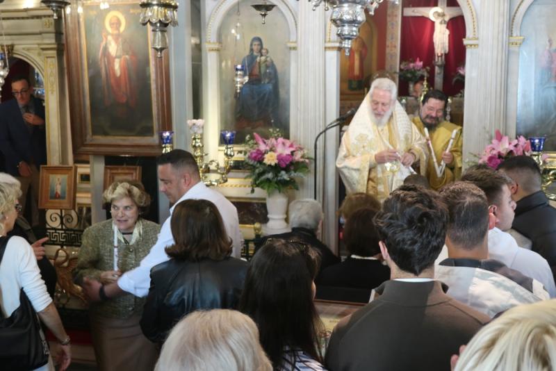 Συνεχάρη τον Προϊστάμενο του Ναού, Πρωτοπρ. Χριστοφόρου Παπανικολάου για την διακονία του, τους Επιτρόπους, τους Ιεροψάλτες και τους Διακονητές του Ναού, ευχαρίστησε την παριστάμενη Ευεργέτιδα του Ναού κα Ζαφειρία Λαυρεντιάδη για τις προσφορές της προς αυτόν, διένειμε στα παιδιά και τους νέους πασχαλινές Λαμπάδες και ευχήθηκε σε όλους καλό και πανευφρόσυνο Πάσχα.