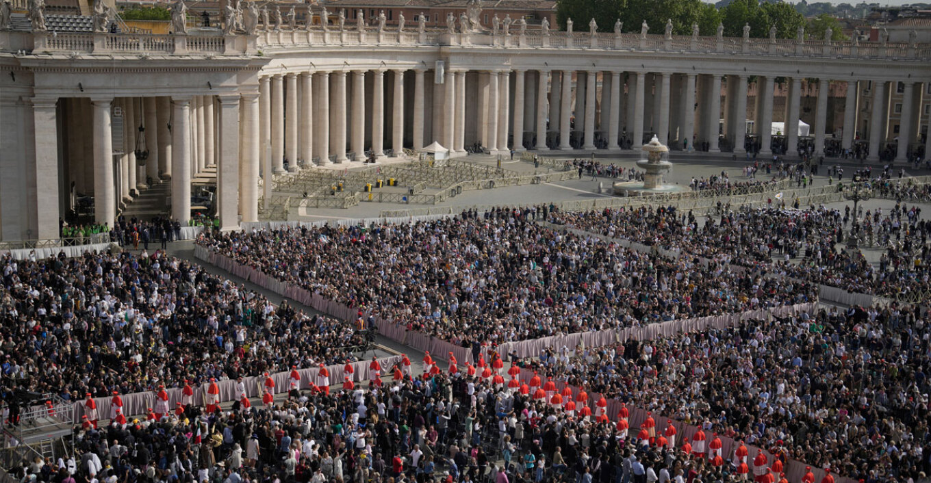 Κοσμοσυρροή στην Πλατεία του Αγίου Πέτρου, όπου περίπου 20.000 πιστοί έχουν συγκεντρωθεί για να αποτίσουν φόρο τιμής στον Πάπα Φραγκίσκου.