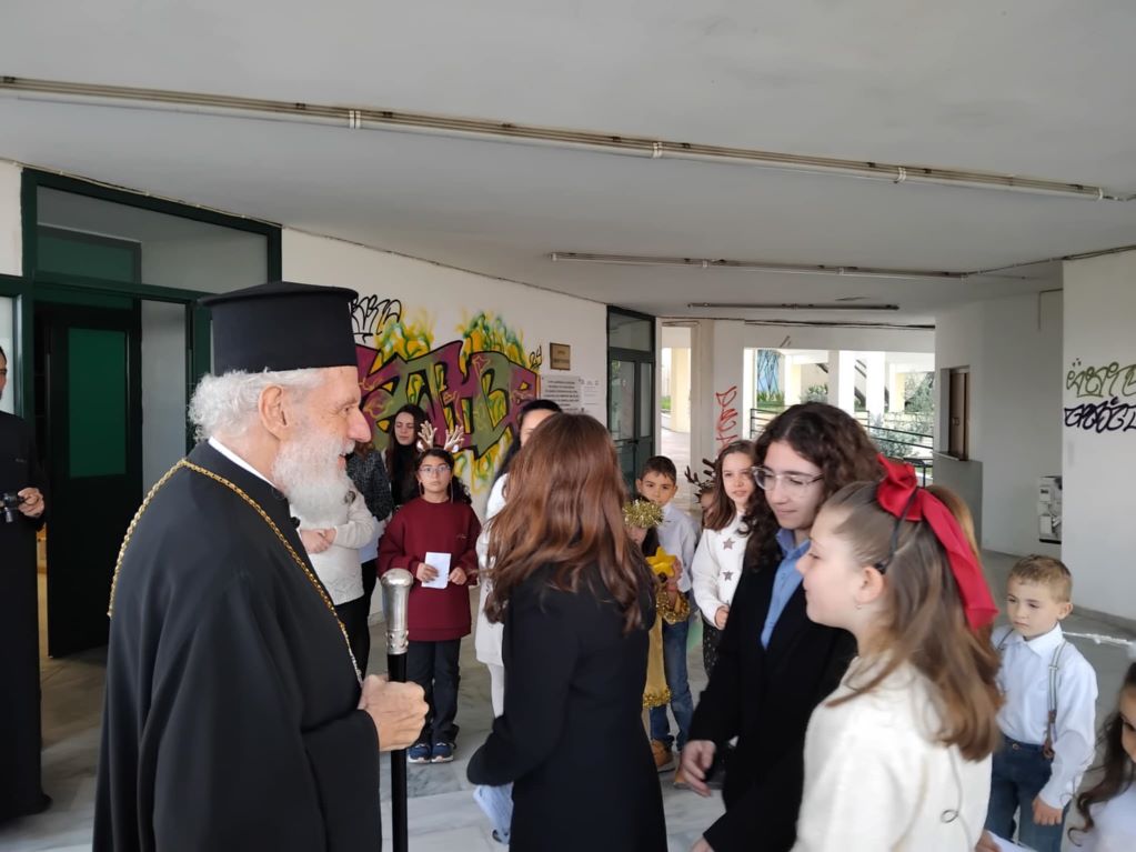 Επίσης, απευθυνόμενος προς τα παιδιά, σημείωσε χαρακτηριστικά ότι “τα Χριστούγεννα είναι γεμάτα φως. Τα λαμπάκια, το άστρο της Βηθλεέμ, όλα μας θυμίζουν το φως του Χριστού. Ένας φως που μας δείχνει το δρόμο της αγάπης. Κάθε φορά που βοηθάτε έναν φίλο σας, που λέτε μία καλή κουβέντα ή που ζητάτε συγνώμη ύστερα από ένα λάθος σας, αυτό το φως μεγαλώνει μέσα σας. Όσο πιο πολύ το μοιράζεστε, τόσο και πιο φωτεινός γίνεται ο κόσμος γύρω σας. Τα Χριστούγεννα, μας μαθαίνουν και την προσφορά προς το διπλανός μας. Με ένα χαμόγελο, με μία αγκαλιά, με λίγη υπομονή στο σπίτι ή το σχολείο. Αυτά τα τόσο μικρά πράγματα, να ξέρετε ότι φαντάζουν πολύ μεγάλα στα μάτια του Θεού”.