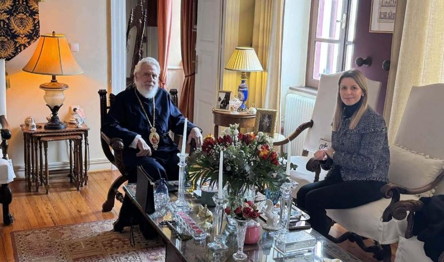Εθιμοτυπική επίσκεψη πραγματοποίησε προ ημερών η γραμματέας της Αποκεντρωμένης Διοίκησης Αιγαίου, Μαριάννα Νικολαΐδου στον σεβασμιώτατο κ. Δωρόθεο Β’, με τον οποίο συζήτησε ποικίλα θέματα γενικού ενδιαφέροντος και ειδικότερα θέματα που αφορούν στα τοπικά Κληροδοτήματα.