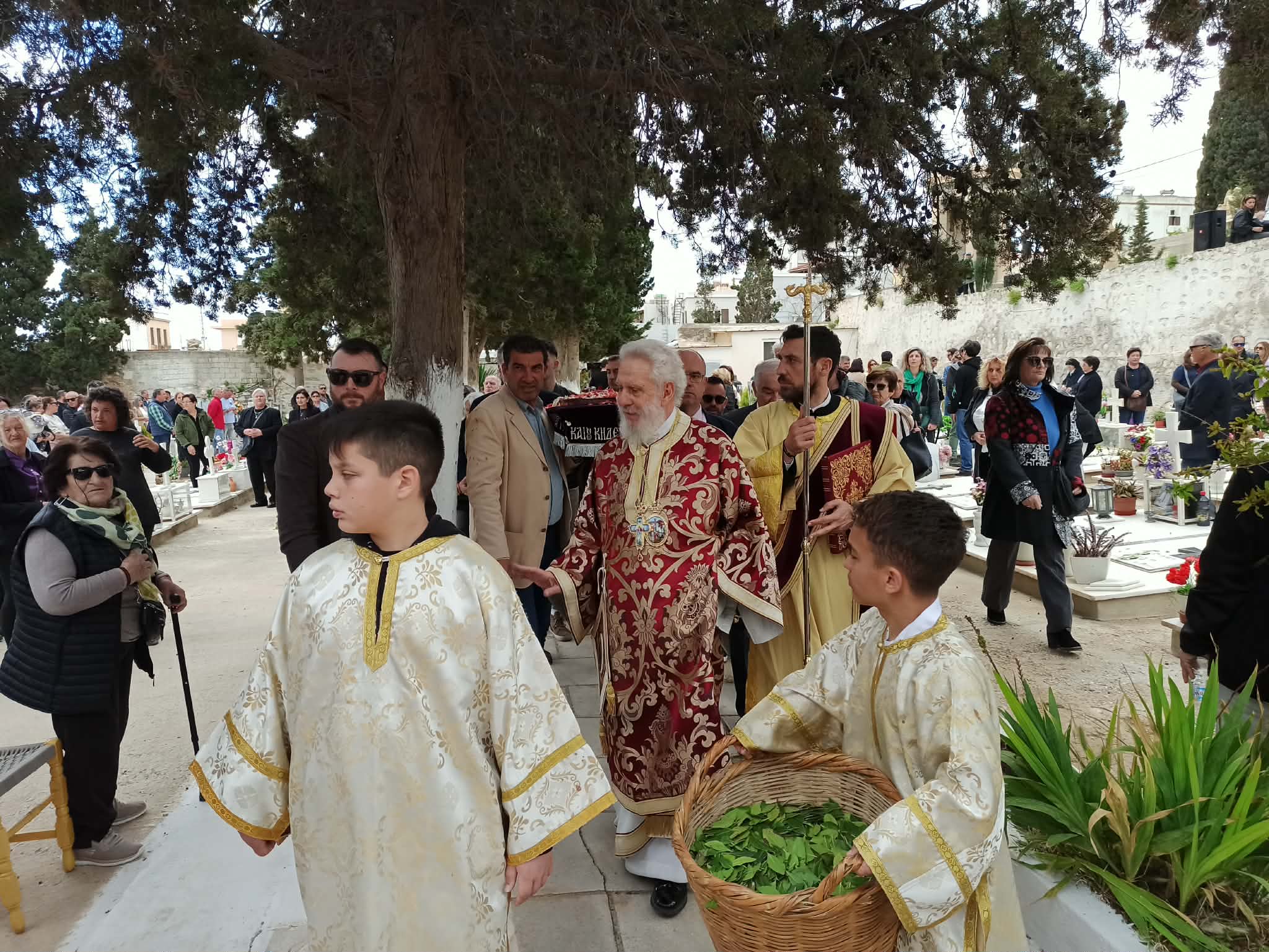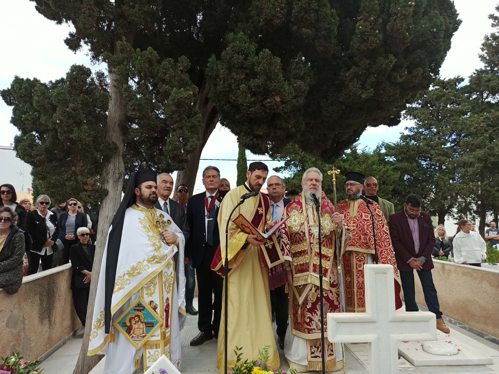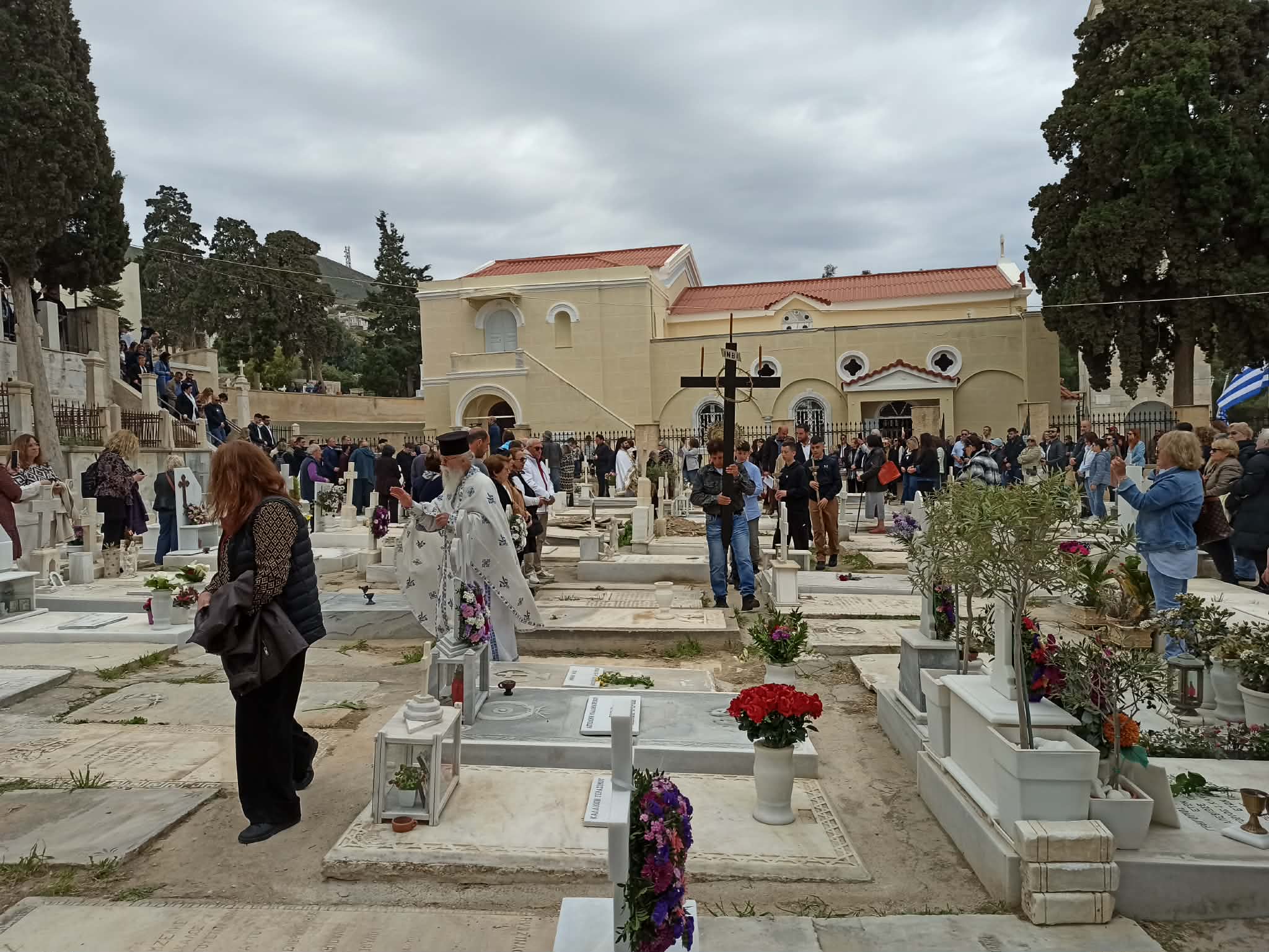 Η Φιλαρμονική μπάντα του Δήμου Σύρου - Ερμούπολης παιάνιζε πένθιμα εμβατήρια, ενώ δεκάδες άνθρωποι συνέρρεαν από το πρωί στο κοιμητήριο του Αγίου Γεωργίου στην Ερμούπολη, κρατώντας λουλούδια στα χέρια για να τιμήσουν τη μνήμη των αγαπημένων τους προσώπων και να παρακολουθήσουν αυτήν την ιδιαίτερα συγκινητική και φορτισμένη συναισθηματικά θρησκευτική εκδήλωση.