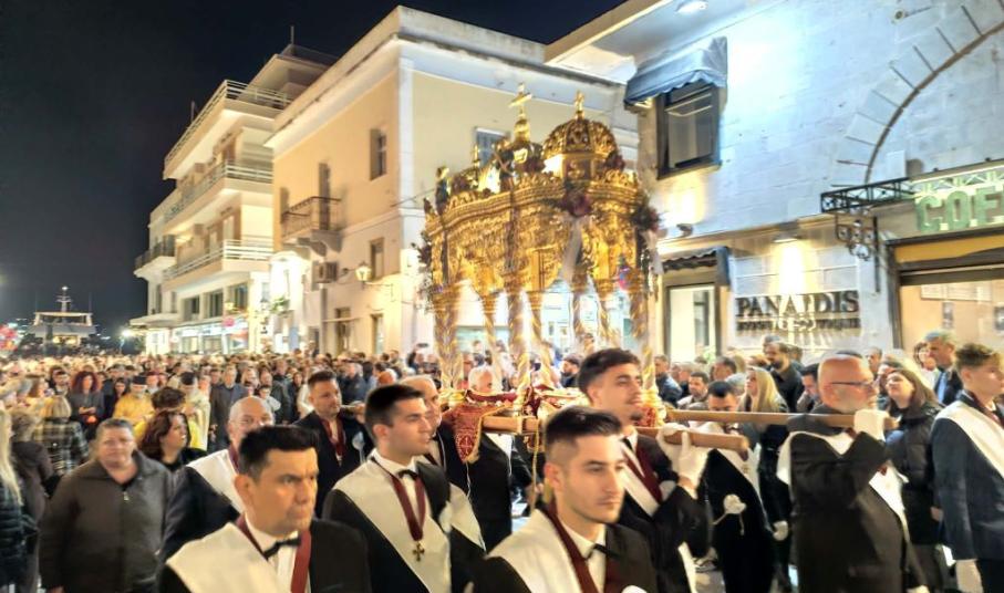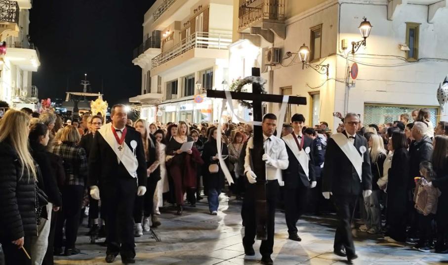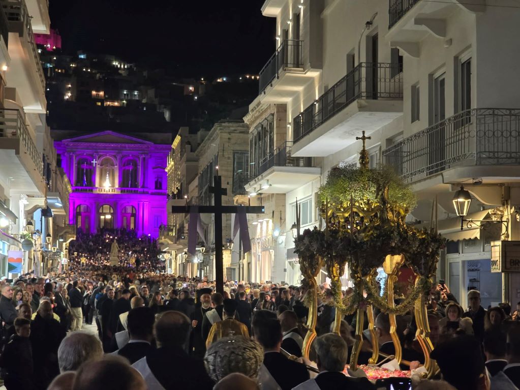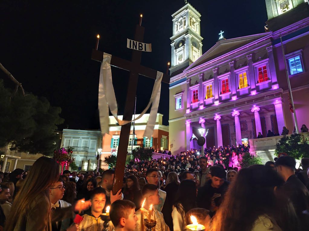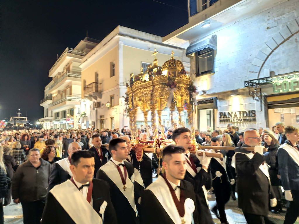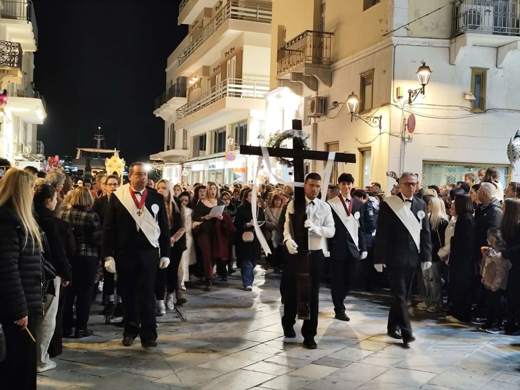 Πλήθος πιστών, μόνιμων κατοίκων, αλλά και παραθεριστών, εκπροσώπων της τοπικής αυτοδιοίκησης α’ και β’ βαθμού, παρουσία του Προέδρου της Δημοκρατίας, Κωνσταντίνου Τασούλα, ο οποίος και βρίσκεται από την Μεγάλη Πέμπτη στο νησί, αλλά και εκπροσώπων των Σωμάτων Ασφαλείας και φορεών, με αναμμένα κεριά στα χέρια και ψάλλοντας το “Ω Γλυκύ μου Έαρ” συμμετείχαν στη λιτανεία των τριών επιτάφιων των Ιερών Ναών Κοιμήσεως της Θεοτόκου, Αγίου Νικολάου και Μεταμορφώσεως του Σωτήρος.