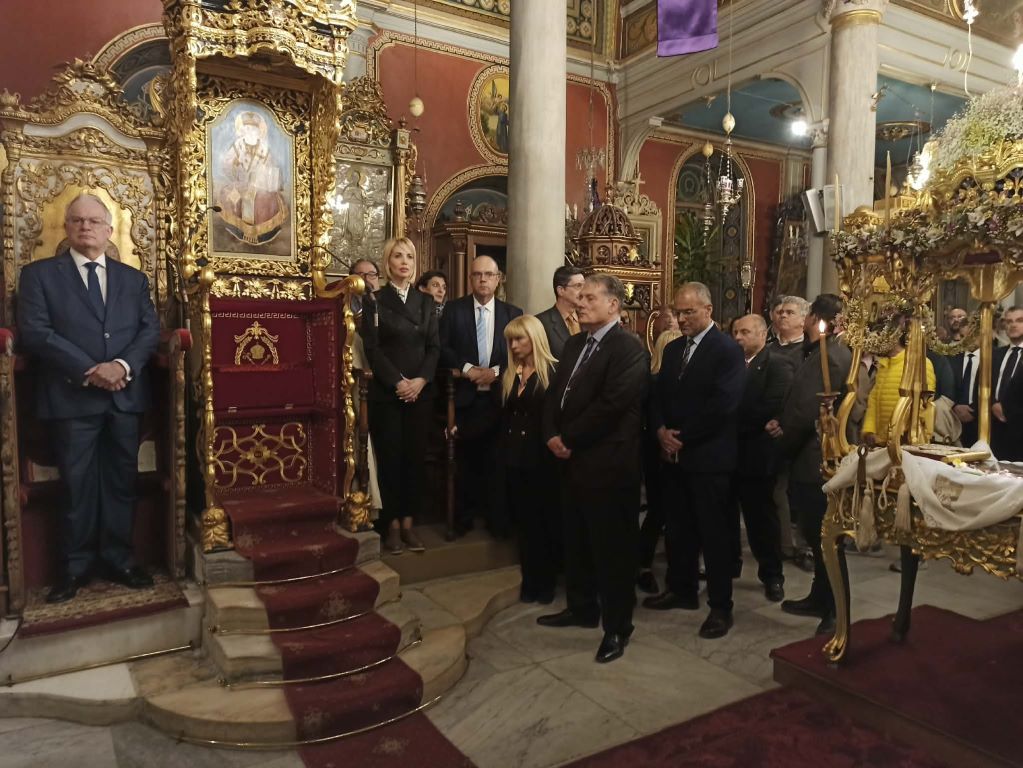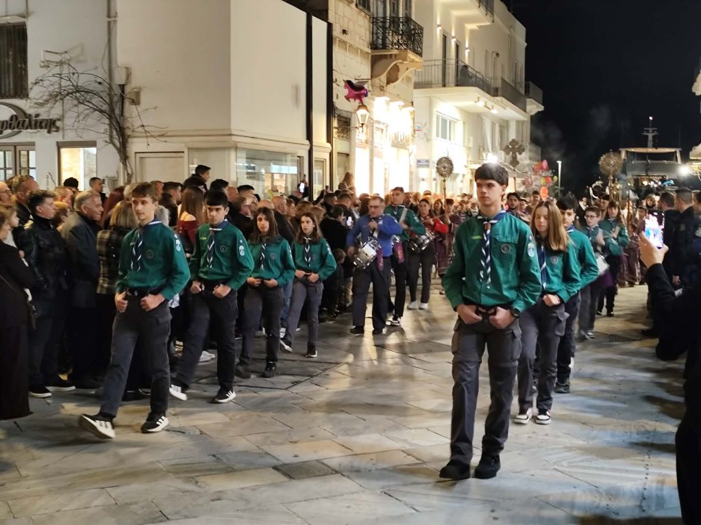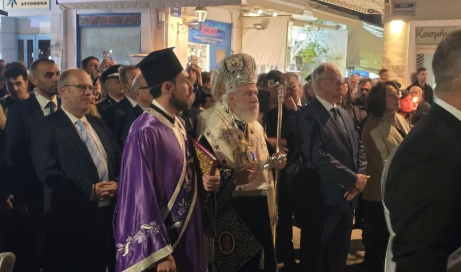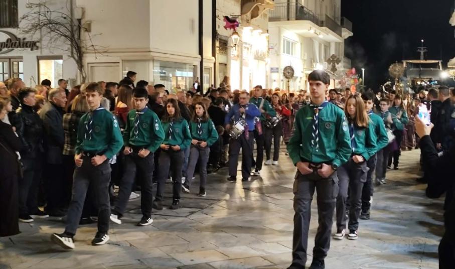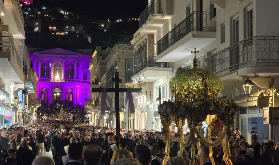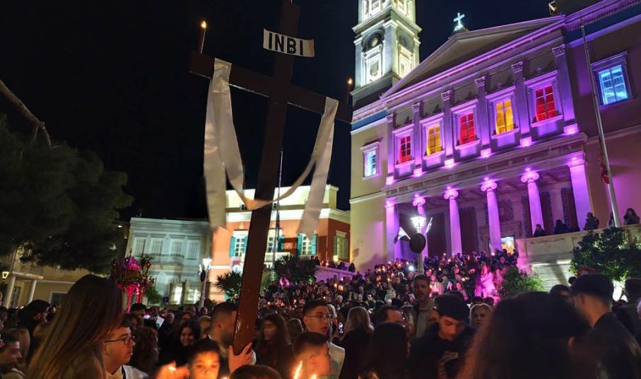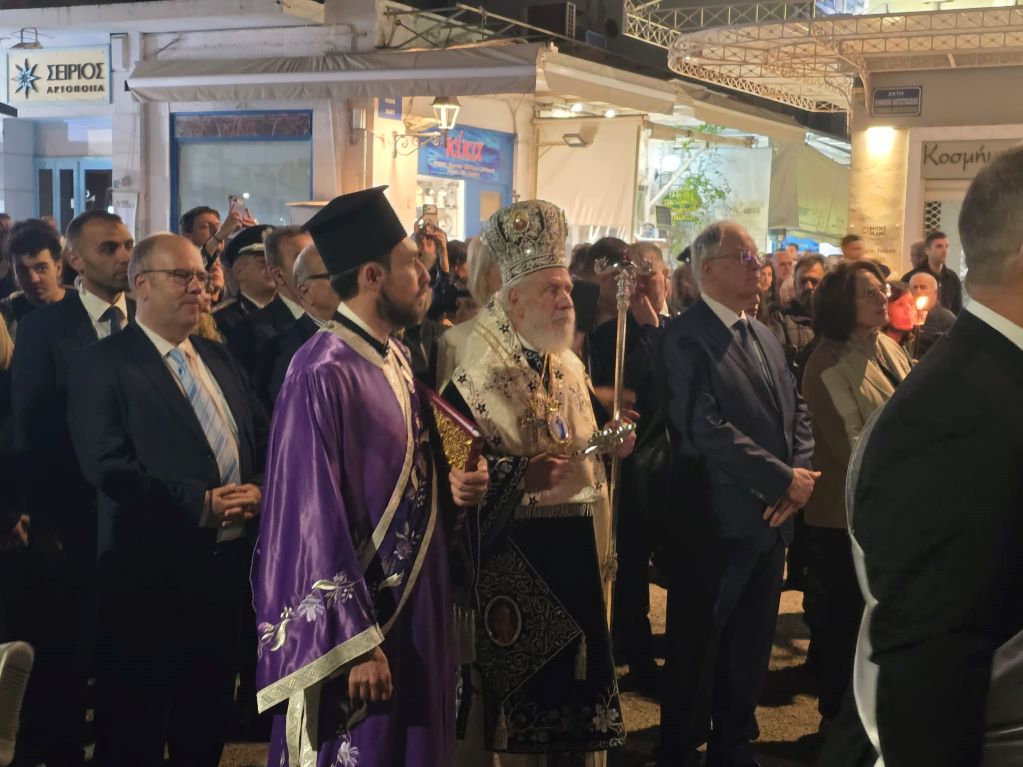 Πλήθος πιστών, μόνιμων κατοίκων, αλλά και παραθεριστών, εκπροσώπων της τοπικής αυτοδιοίκησης α’ και β’ βαθμού, παρουσία του Προέδρου της Δημοκρατίας, Κωνσταντίνου Τασούλα, ο οποίος και βρίσκεται από την Μεγάλη Πέμπτη στο νησί, αλλά και εκπροσώπων των Σωμάτων Ασφαλείας και φορεών, με αναμμένα κεριά στα χέρια και ψάλλοντας το “Ω Γλυκύ μου Έαρ” συμμετείχαν στη λιτανεία των τριών επιτάφιων των Ιερών Ναών Κοιμήσεως της Θεοτόκου, Αγίου Νικολάου και Μεταμορφώσεως του Σωτήρος.