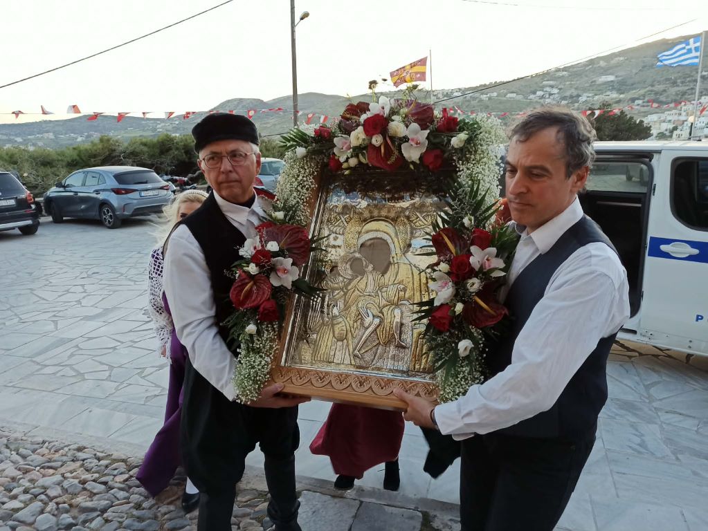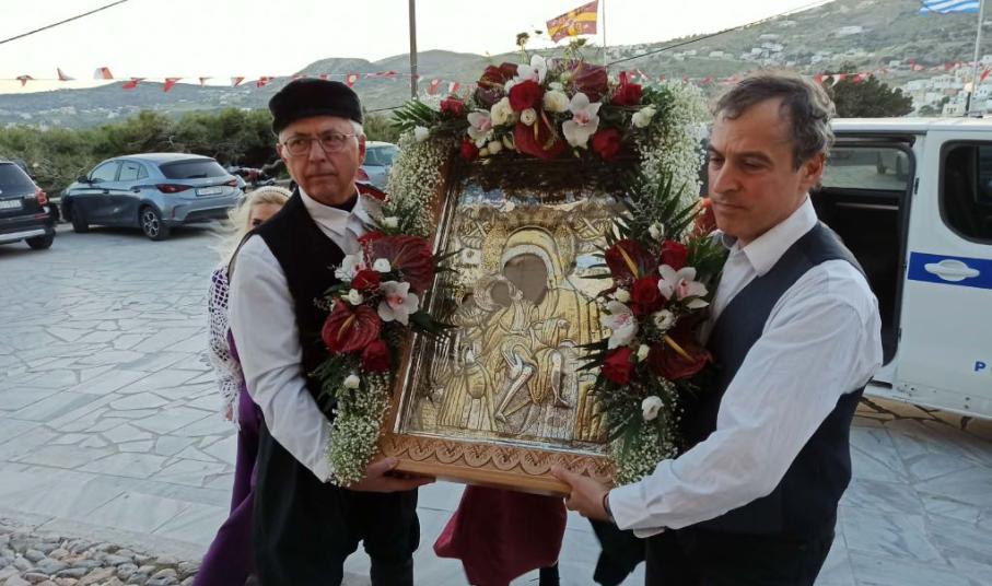 Την εικόνα υποδέχθηκε ο μητροπολίτης Σύρου, Δωρόθεος Β’, παρουσία εκπροσώπων της αυτοδιοίκησης, των Σωμάτων Ασφαλείας και αρχών του νησιού, όπως και του Συλλόγου Μικρασιατών, αλλά και πιστών.