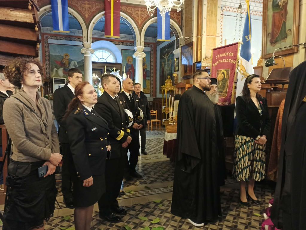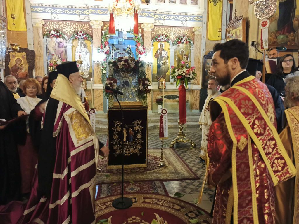 Στην προσφυγιά και τις περιπέτειες της εικόνας, οι οποίες εκφράζουν και τις περιπέτειες και τον πόνο της προσφυγιάς των οικιστών και ιδρυτών Ερμούπολης, αναφέρθηκε στη σύντομη προσλαλιά του, προ του πέρατος του αρχιερατικού εσπερινού, ο κ.κ. Δωρόθεος Β’, πλαισιωμένος από τον προϊστάμενος του ναού, αρχιμ. Νικόλαο Γαβαλλά, αλλά και από ιερείς της Σύρου.