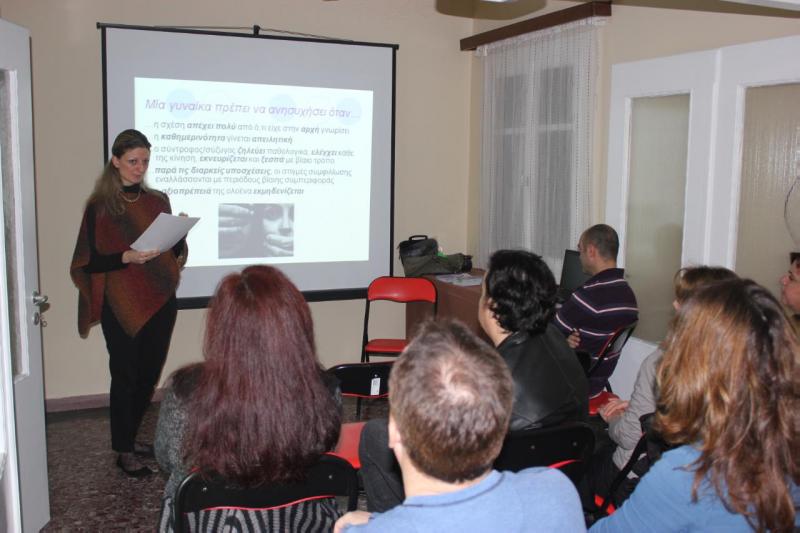 Παράλληλα, η κ. Πράπα ενημέρωσε το κοινό πως η πολιτεία, στην προσπάθειά της για την εξάλειψη του φαινομένου της βίας, υλοποιεί το “Εθνικό Πρόγραμμα για την Ουσιαστική Ισότητα των Φύλων 2010-2013” , το οποίο χρηματοδοτείται από το ΕΣΠΑ. Στις δομές πρόληψης και καταπολέμησης έμφυλης βίας, περιλαμβάνονται η τηλεφωνική γραμμή SOS, τα Συμβουλευτικά Κέντρα και οι Ξενώνες Φιλοξενίας Κακοποιημένων Γυναικών, που λειτουργούν στην έδρα κάθε περιφέρειας.