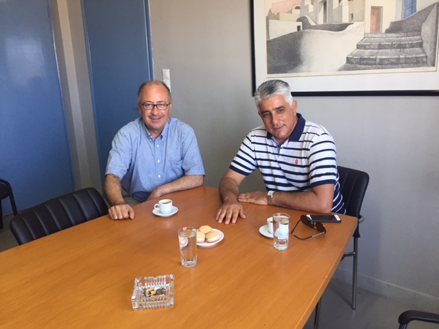 Με το Δήμαρχο Πύλου – Νέστορος και αντιπρόεδρο της ΚΕΔΕ (Κεντρική Ένωση Δήμων Ελλάδας), κ. Δημήτρη Καφαντάρη συναντήθηκε χθες Δευτέρα, ο Δήμαρχος Θήρας κ. Νίκος Ζώρζος στη Σαντορίνη.