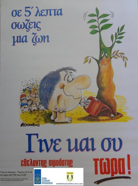 Το Σώμα Ελλήνων Προσκόπων – Περιφερειακή Εφορεία Κυκλάδων, σε συνεργασία με το Τμήμα Αιμοδοσίας του Νοσοκομείου Σύρου, καλούν όλα τα μέλη και τους φίλους των προσκόπων στην εθελοντική αιμοδοσία που διοργανώνεται την Πέμπτη 22 Μαΐου 2014 στην πλατεία Μιαούλη.