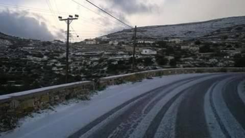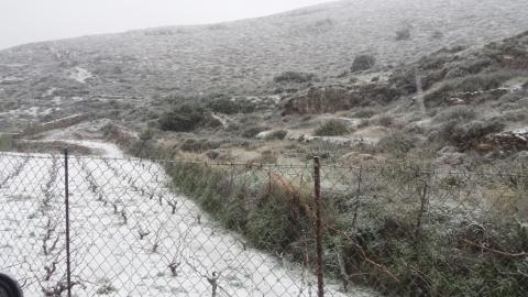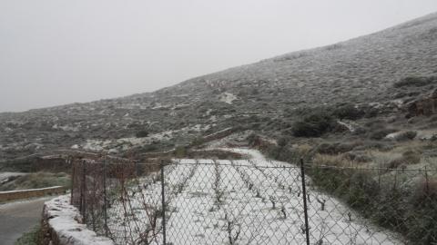 Στα λευκά "ντύθηκαν" αρκετές περιοχές και στην πρωτεύουσα των Κυκλάδων, κυρίως στα ορεινότερα σημεία του νησιού, τα οποία καλύφθηκαν από χιόνι. Πιο συγκεκριμένα, το "έστρωσε" στην Απάνω Μεριά, στα Χρούσσα και στο Πισκοπειό.