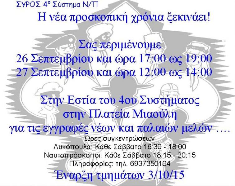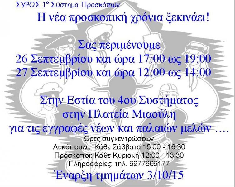 Από την Περιφερειακή Εφορεία Κυκλάδων ανακοινώνεται ότι ξεκινούν οι εγγραφές για την προσκοπική χρονιά 2015-16 ως εξής:
