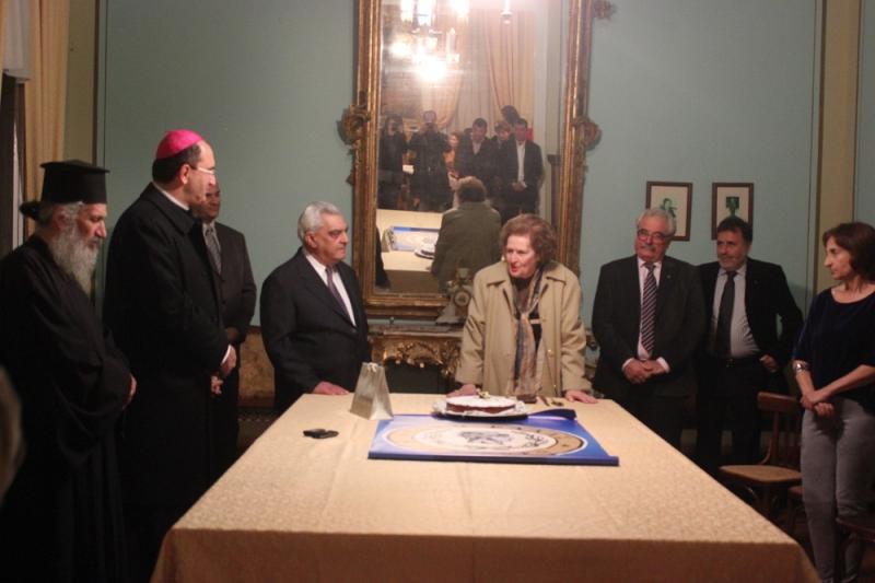 Κατόπιν των ανωτέρω, χαιρέτισαν μέλη του ΔΣ της Λέσχης Ελλάς, αλλά και η κ. Χριστίνα Λιγοψυχάκη, ενώ εντυπωσιασμένος δήλωσε από την ιστορική πορεία του Σωματείου ο Καθολικός Επίσκοπος, γνωστοποιώντας δε, πως, η πρόσκληση προς τον Πάπα να μεταβεί στο νησί, έχει γίνει πραγματικότητα εδώ και λίγα χρόνια (2005) από κοινού με τον Δήμο Ερμούπολης. Κατέληξε μάλιστα, λέγοντας πως η παρουσία και των δύο εκπροσώπων των Εκκλησιών θα ήταν μεγάλη ευλογία για τον τόπο μας.
