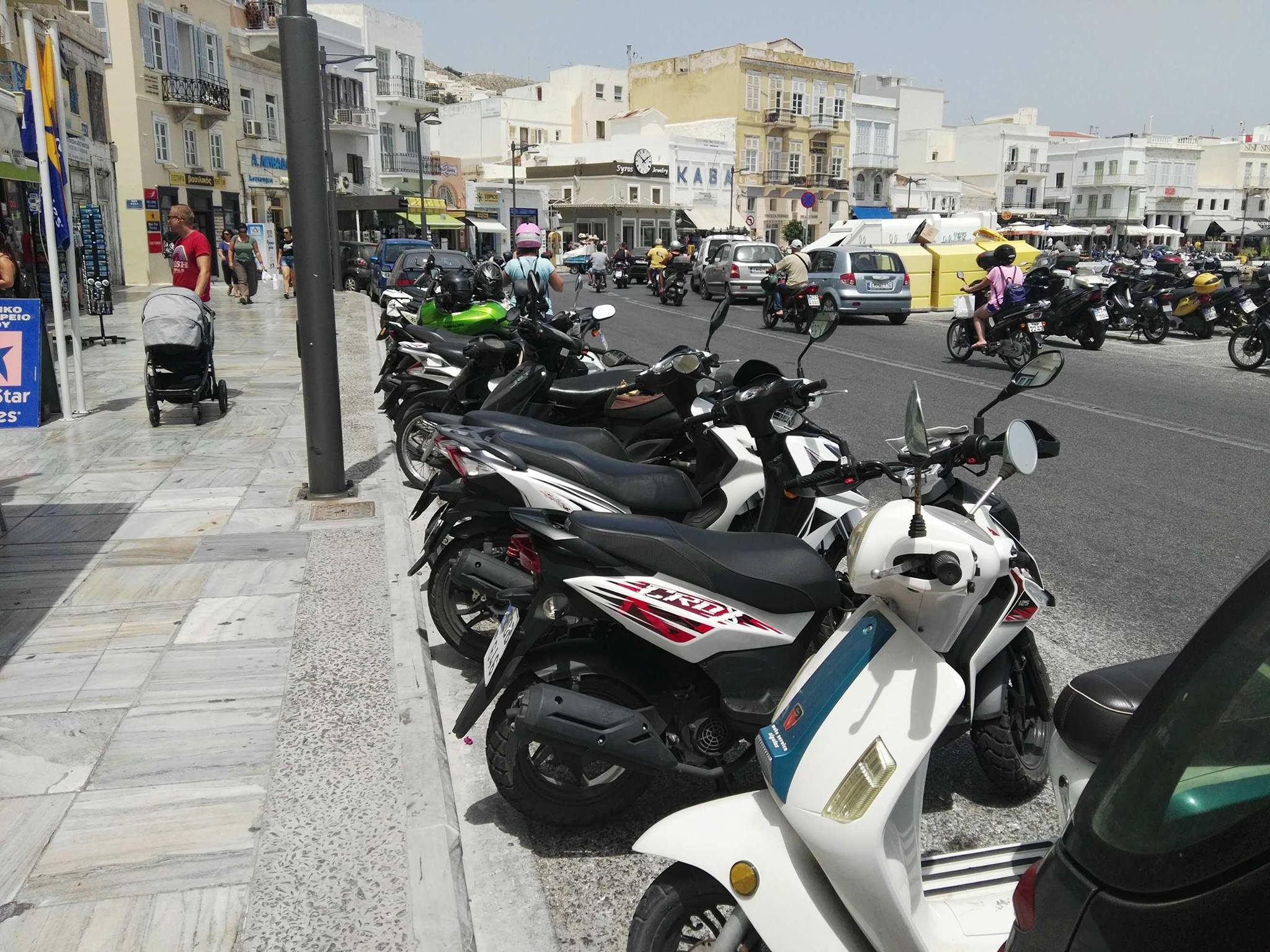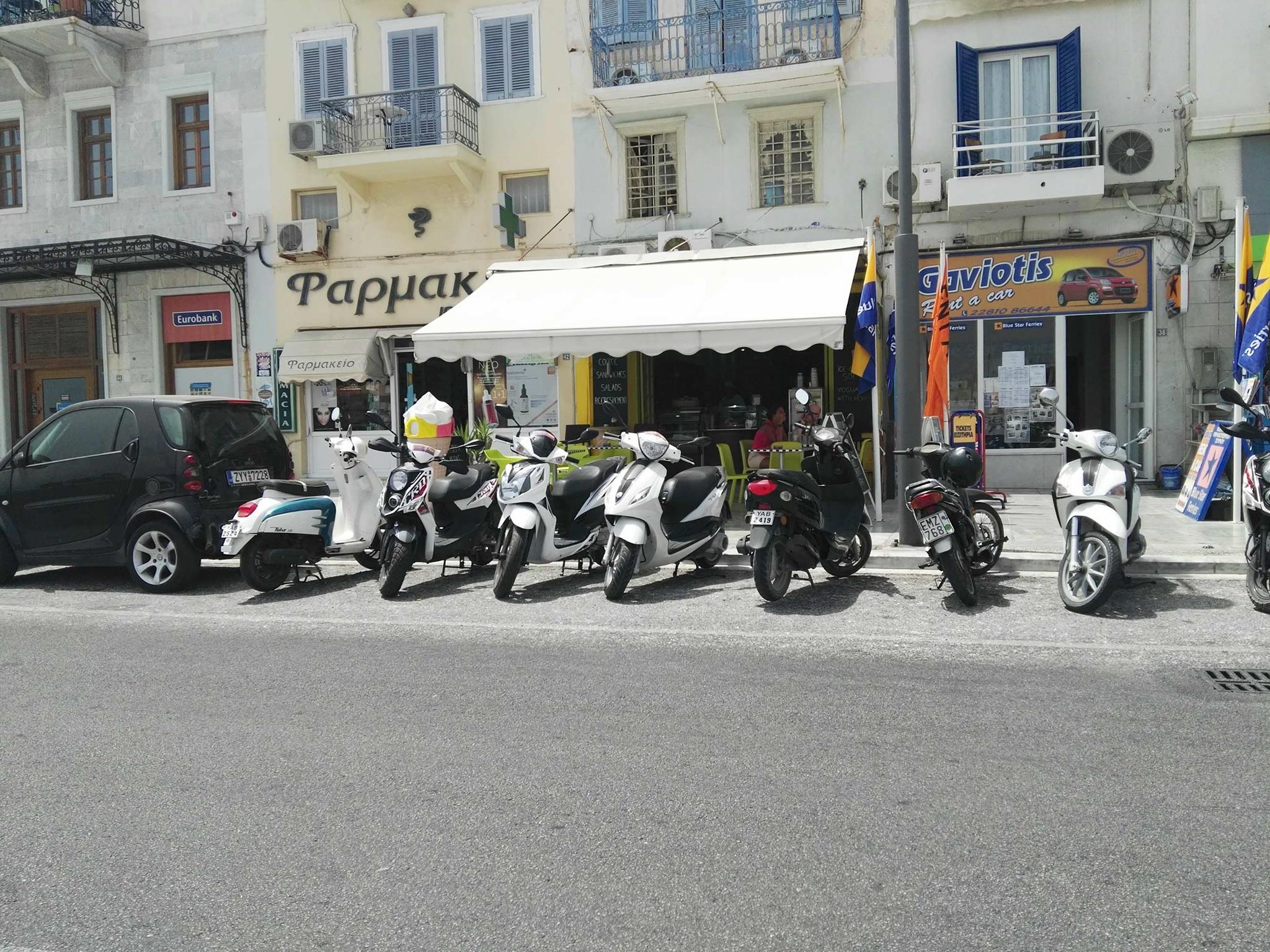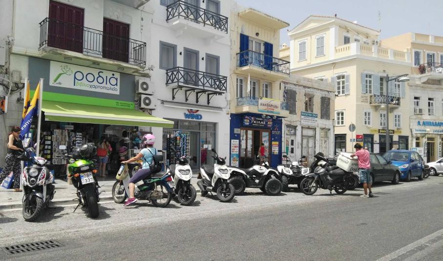 Χαρακτηριστικό παράδειγμα το τμήμα της παραλιακής ζώνης στο ύψος της έναρξης της οδού Κέας, το οποίο αν κι έχει προσδιορισθεί ως χώρος προσωρινής στάσης για την εξυπηρέτηση των πολιτών στην αγορά, ωστόσο, καθ΄ όλη τη διάρκεια των τελευταίων ημερών χρησιμοποιείται σταθερά ως χώρος διαθέσιμος(;) για τη σχεδόν μόνιμη στάθμευση δικύκλων.