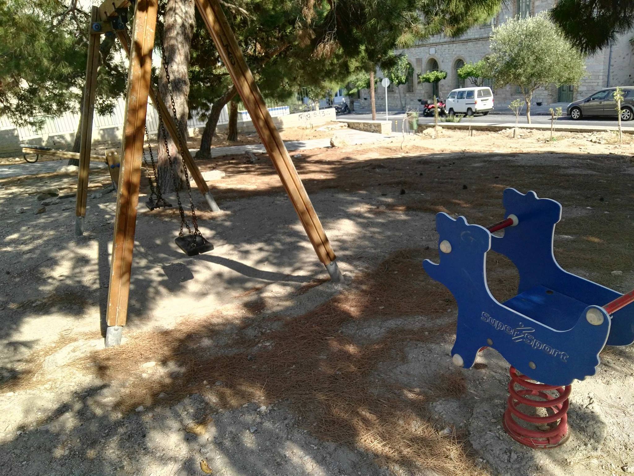 Σε μεγάλο βαθμό – ακατάλληλος - κρίνεται ο χώρος της παιδικής χαράς πλησίον του Γενικού Νοσοκομείου Σύρου, η εικόνα του οποίου αποπνέει σχεδόν συνολική εγκατάλειψη, παρά το γεγονός ότι παραμένει προσβάσιμη στα μικρά και μεγαλύτερα παιδιά της γειτονιάς.