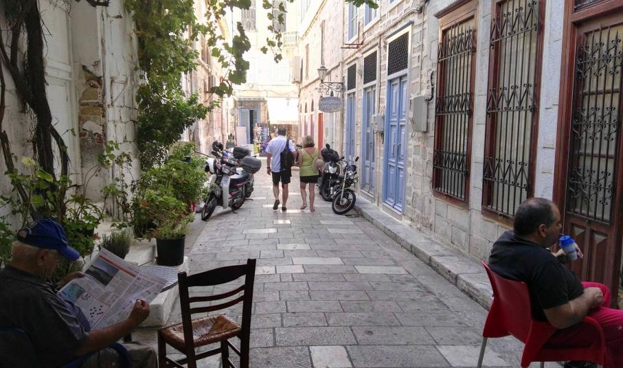 Για μία ακόμη φορά διαπιστώνεται πως αν και ο κυκλοφοριακός φόρτος στο κέντρο της Ερμούπολης έχει περιοριστεί σημαντικά δεδομένης της αναχώρησης μεγάλου αριθμού επισκεπτών που επέλεξαν την πρωτεύουσα των Κυκλάδων για τις φετινές καλοκαιρινές διακοπές τους, ωστόσο, οι ίδιοι οι πολίτες του νησιού εξακολουθούν να αφήνουν επί ώρες τα δίκυκλά τους εντός του μικρού χώρου ορισμένων οδών.