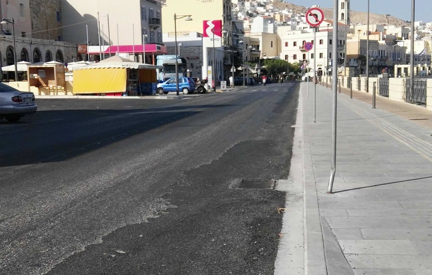 Στη διακοπή των εργασιών αποκατάστασης του οδοστρώματος του έργου της ανάπλασης του παραλιακού μετώπου της Ερμούπολης προχώρησε ο ανάδοχος, μετά από απόφαση της Τεχνικής Υπηρεσίας του Δήμου και του Δημοτικού Λιμενικού Ταμείου Σύρου, αφού οι πρώτες εικόνες της διορθωτικής... παρέμβασης, απέδειξαν πως επρόκειτο ξεκάθαρα για “μπαλώματα”.