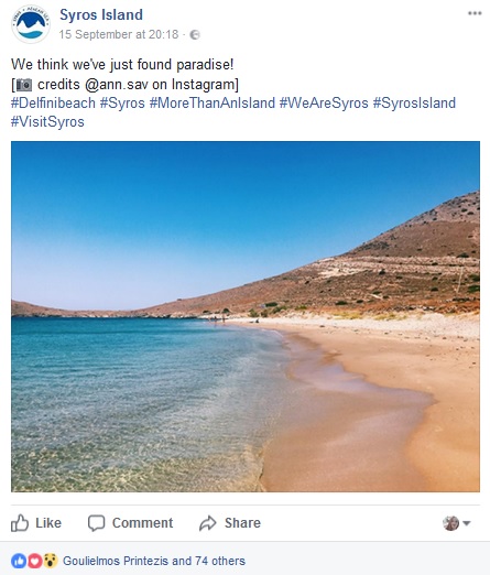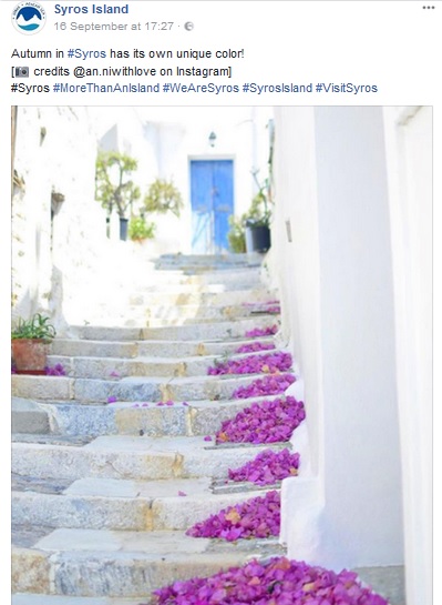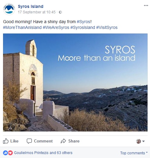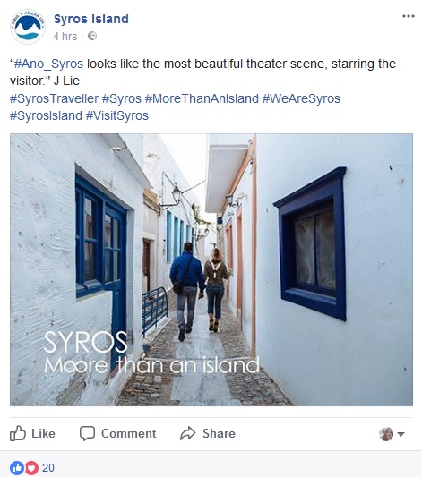 Μία προσεκτική ματιά δε, στις συγκεκριμένες αναρτήσεις καθιστά σαφές πως, η προσπάθεια προβολής της Σύρου απευθύνεται και σε ξένο κοινό, με τη χρήση της αγγλικής γλώσσας να είναι σχεδόν αποκλειστική στα διάφορα posts.