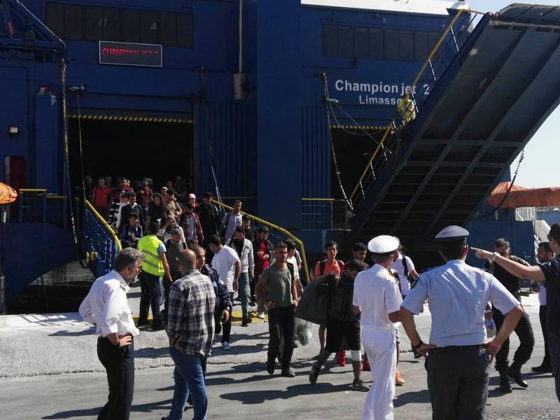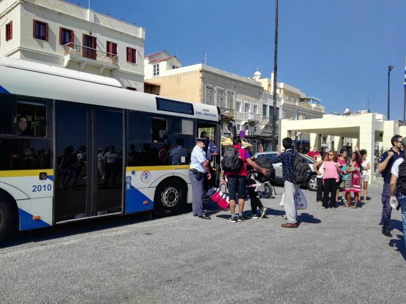 Αμέσως μετά την αποβίβασή τους από το Champion Jet 2 οι ίδιοι μεταφέρθηκαν με το παροπλισμένο mini bus του Δήμου Σύρου – Ερμούπολης στο κτίριο της Αστυνομίας, σε δύο διαδοχικά δρομολόγια. Όσοι εκ των προσφύγων παρέμειναν να περιμένουν το δεύτερο δρομολόγιο του mini bus, οδηγήθηκαν συνοδεία της Αστυνομίας στα στέγαστρα αναμονής στο λιμάνι της Ερμούπολης.