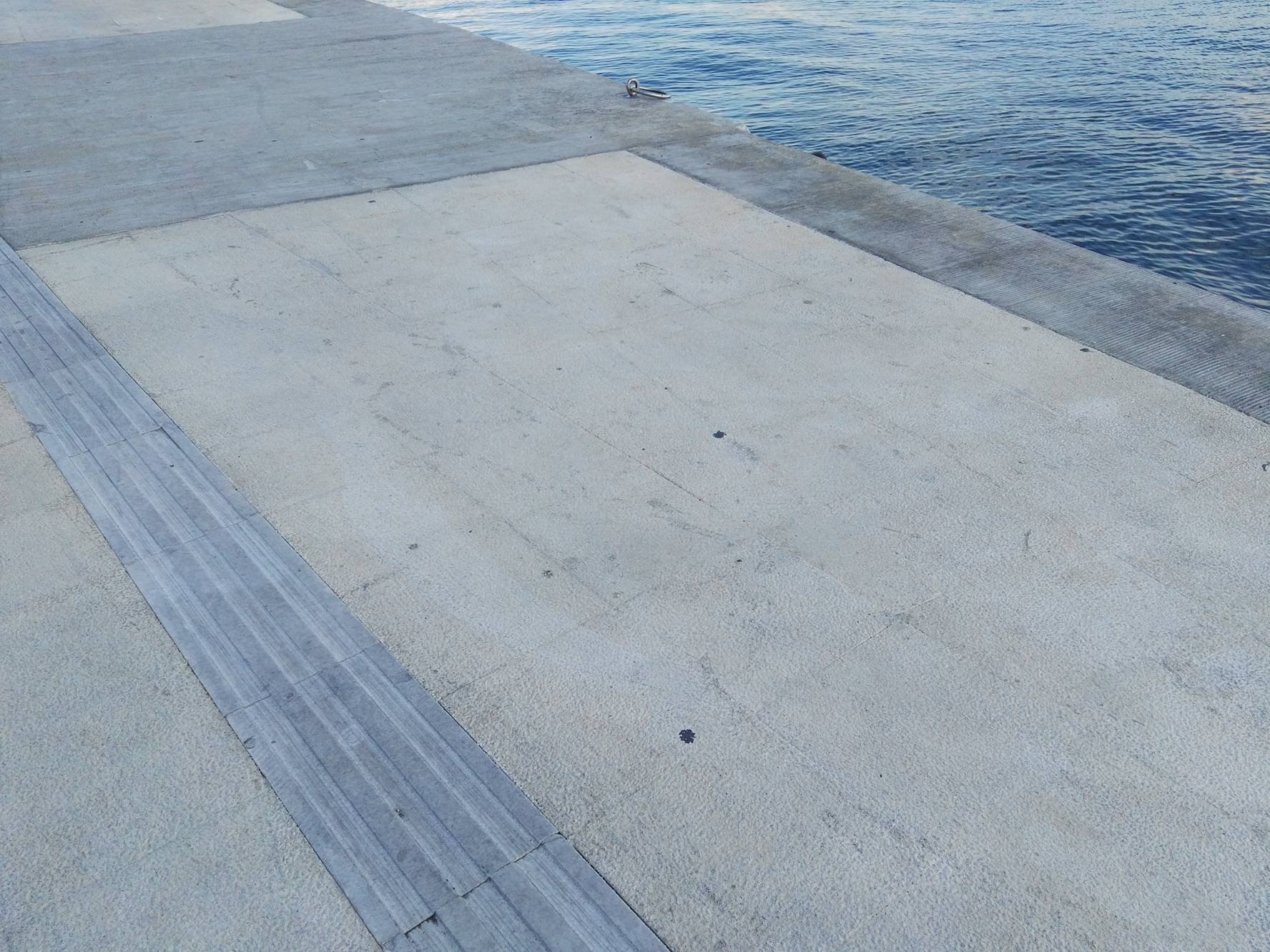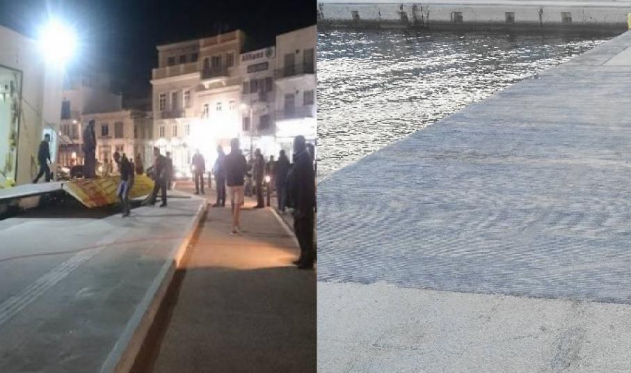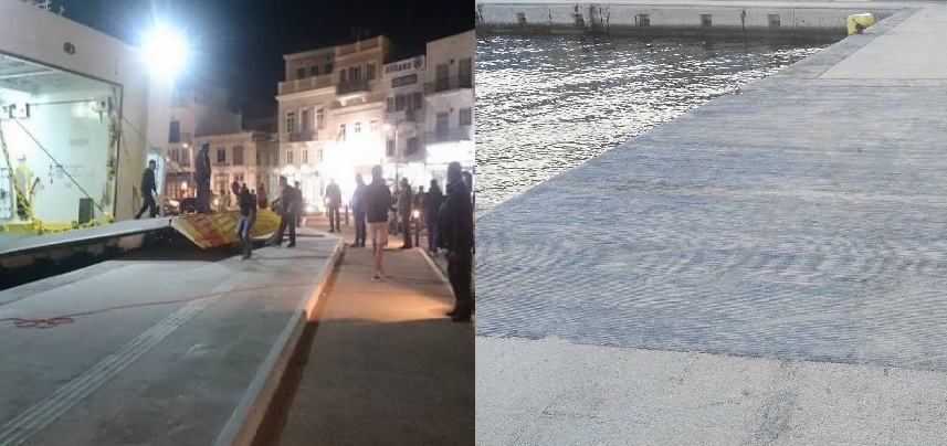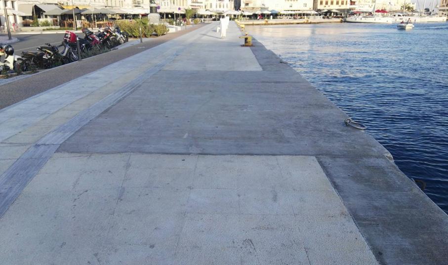 Συγκεκριμένα, είχαν προκληθεί έντονες αντιδράσεις καθώς η μπουκαπόρτα του πλοίου που εξυπηρετούσε τα ενδοκυκλαδικά πλοία είχε προκαλέσει εκτεταμένες φθορές στο νέο τμήμα της παραλιακής ζώνης, μετά την εκτέλεση του έργου της ανάπλασης, με αποτέλεσμα την υποβάθμιση της ανανεωμένης εικόνας της παραλίας Ερμούπολης. Ειδικότερα, όπως διαπιστώνεται από το νέο φωτογραφικό υλικό που ελήφθη μόλις χθες, αν και έχει συμπληρωθεί διάστημα μεγαλύτερο του έτους από το πολυσυζητημένο περιστατικό, ωστόσο σήμερα, διακρίνονται – καθώς παραμένουν – οι φθορές στην επιφάνεια του πεζοδρομίου, οι μικρές “λακκούβες” που προκλήθηκαν σε αυτό, καθώς επίσης διακρίνεται η ζημιά σε μαρμάρινες πλάκες που εξυπηρετούν τους συμπολίτες μας με προβλήματα όρασης (οδηγοί όδευσης) ενώ παρατηρείται και η αποκόλληση μικρών τμημάτων του σκυροδέματος που είχε χρησιμοποιηθεί.