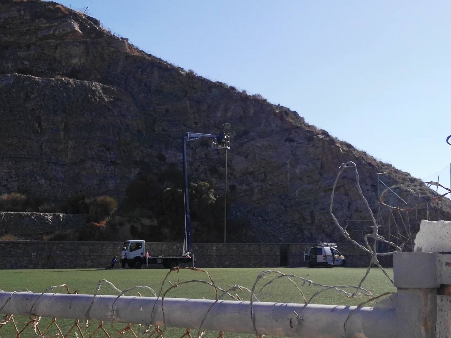 Πέραν του προγραμματισμού που έχει η Τεχνική Υπηρεσία για το συγκεκριμένο γήπεδο ποδοσφαίρου, αξίζει να τονισθεί πως, χθες, πραγματοποιήθηκαν κι εργασίες συντήρησης των φωτιστικών ιστών του γηπέδου, με εργάτες και ειδικό γερανοφόρο όχημα να μεταφέρθηκαν στον αγωνιστικό χώρο για το απαραίτητο έργο.