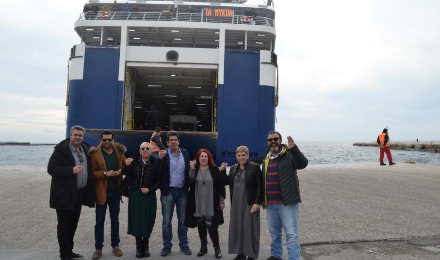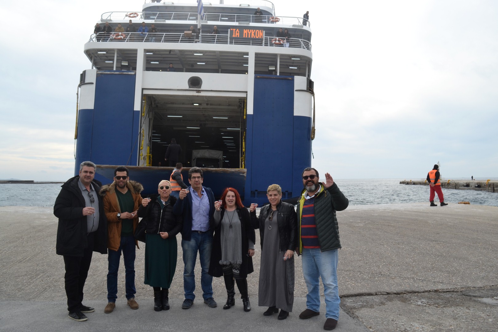 Ο Πρόεδρος Ανδρέας Τσιμέκης και τα μέλη του Δ.Σ. του Εμποροεπαγγελματικού & Βιοτεχνικού Συλλόγου Τήνου υποδέχθηκαν το πρώτο δρομολόγιο πλοίου που ‘’έπιασε’’ λιμάνι στο νησί μας για το 2018.Το πλοίο ήταν το SUPERFERRY 2 της ακτοπλοϊκής εταιρείας GOLDEN STAR FERRIES και έφτασε στο λιμάνι μας στις 12:15.