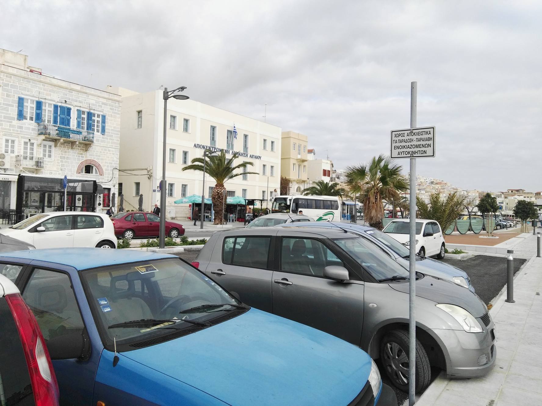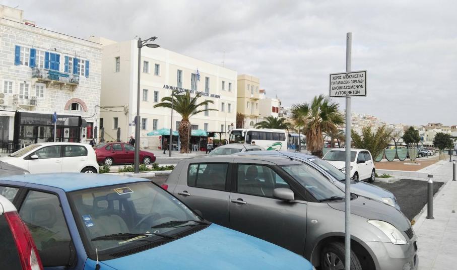 Αν και ο εν λόγω χώρος γνωστός και ως “kiss and ride” έχει διαμορφωθεί μετά το έργο της ανάπλασης του παραλιακού τμήματος, με σκοπό να εξυπηρετείται το επιβατικό κοινό στον λιμένα Ερμούπολης κατά τις ώρες αφιξοαναχωρήσεων των πλοίων, ωστόσο σήμερα, με δεδομένη τη μη υπογραφή νέας σύμβασης για τη φύλαξή του – η οποία όμως αναμένεται εντός των ημερών – τον έχει καταστήσει χώρο διαθέσιμο για πολύωρη στάθμευση.