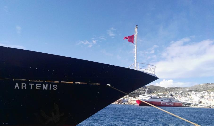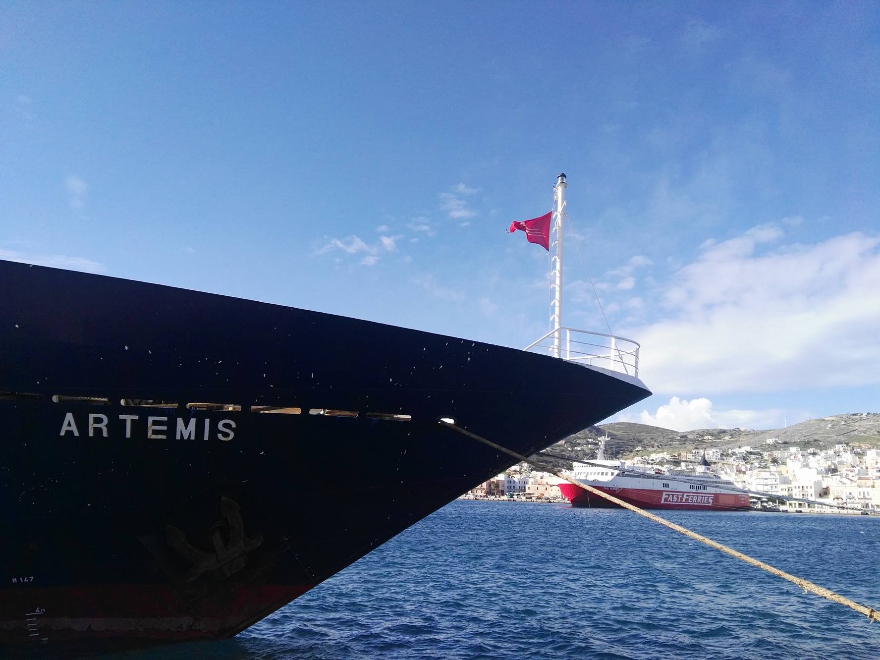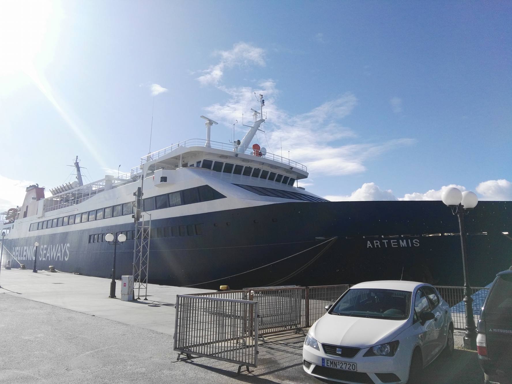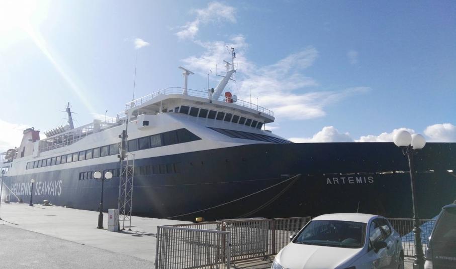 Τέλος, πλαγιοδετημένο παρέμεινε στη θέση των κρουαζιερόπλοιων, για πολλές ώρες και το πλοίο “ARTEMIS” της Hellenic Seaways, το οποίο δεν εκτέλεσε τα προγραμματισμένα δρομολόγιά του.