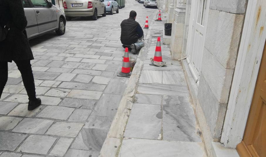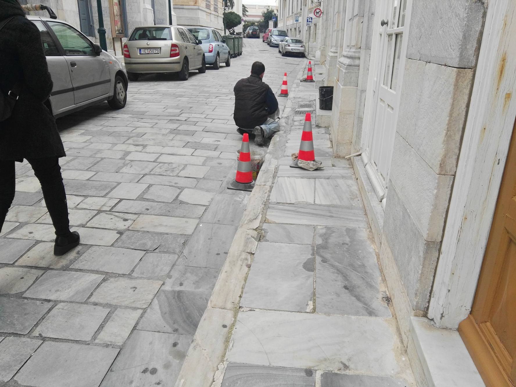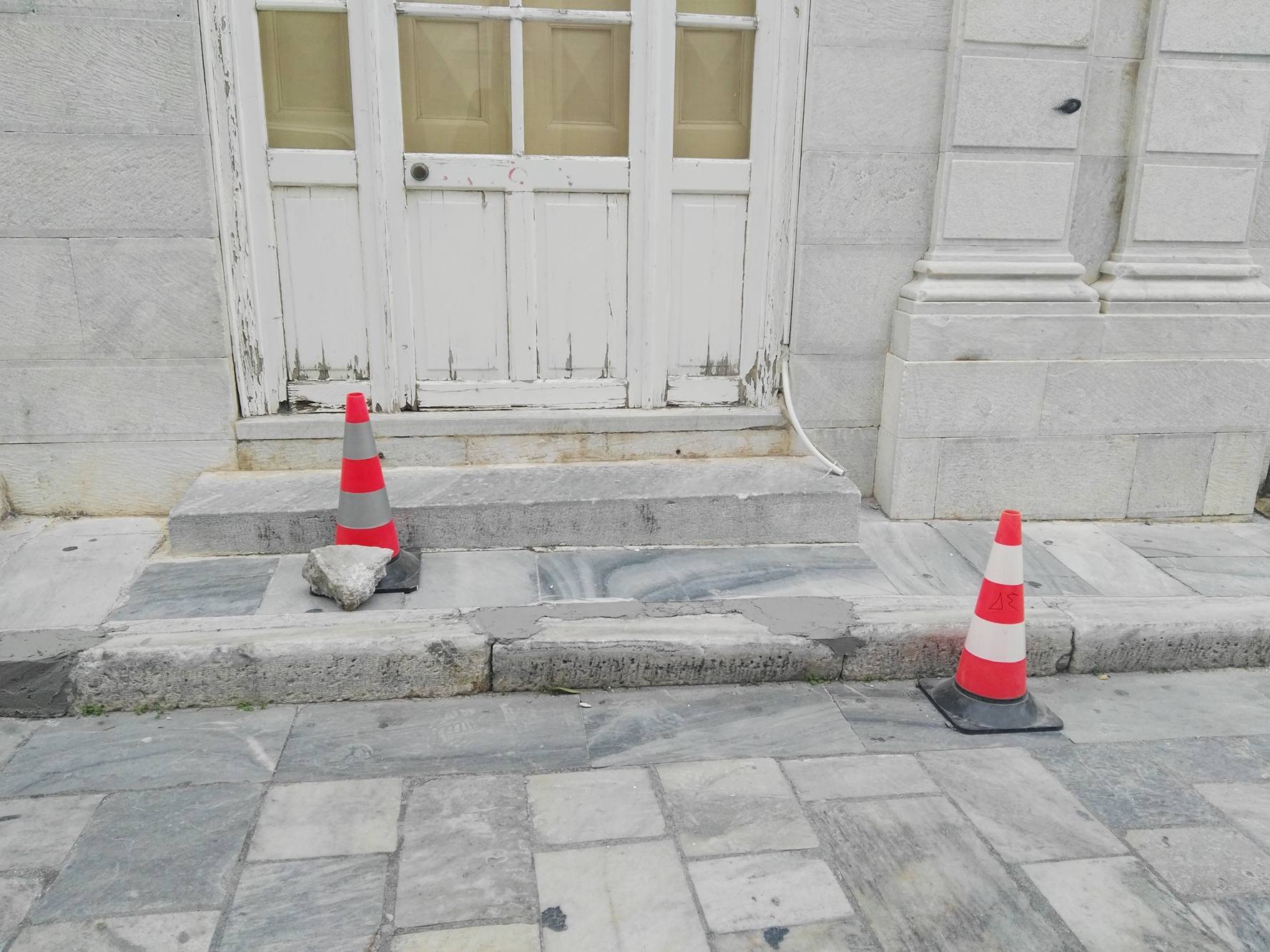 Αν κι επανειλημμένως στο παρελθόν είχε επισημανθεί η δυσκολία προσέγγισης και πρόσβασης στον εσωτερικό χώρο του κτιρίου της Φιλαρμονικής στην Ερμούπολη, των προσώπων – μουσικών και μαθητών – που καθημερινά επισκέπτονται τις αίθουσες διδασκαλίας, ωστόσο, μέχρι και χθες δεν είχε δρομολογηθεί το απαραίτητο έργο επισκευής του πεζοδρομίου.