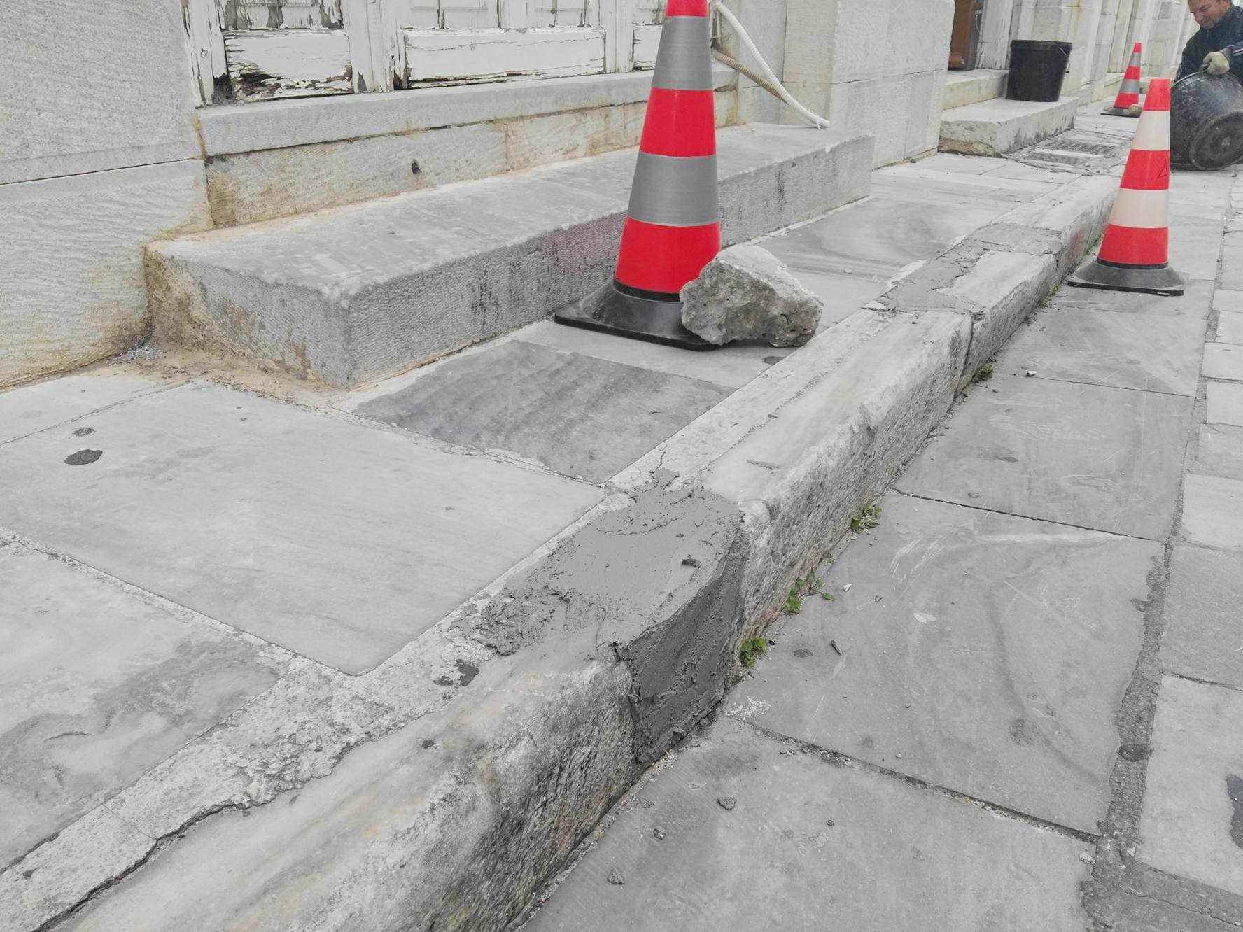 Μόλις χθες, το Τμήμα Μικρών Έργων προχώρησε στις απαιτούμενες επισκευές, επανατοποθετώντας τα βασικά τμήματα των μαρμάρων στη σωστή θέση, ώστε να εξασφαλίζεται η δυνατότητα ομαλής πορείας αφενός για τους πεζούς κι αφετέρου για τους ανθρώπους που μεταβαίνουν στην Φιλαρμονική.