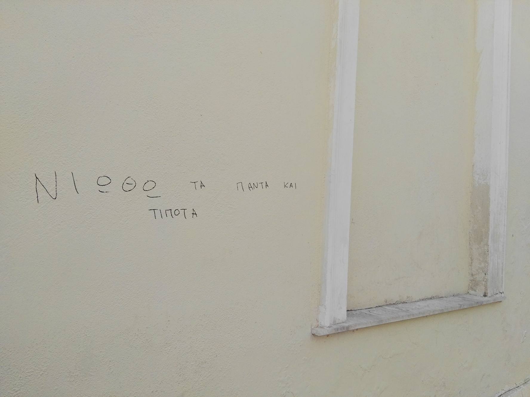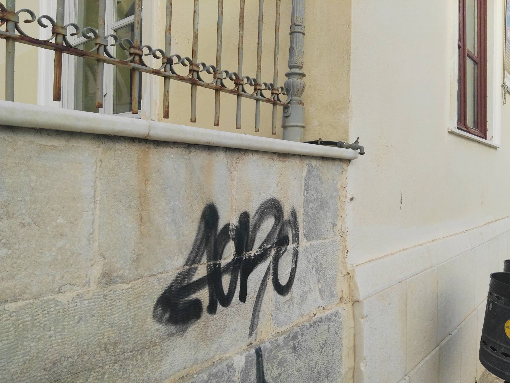 Μάλιστα, στα τμήματα των μικρών κήπων του θεάτρου διαπιστώνονται σε αρκετά σημεία γκράφιτι και συνθήματα, τα οποία έχουν καλυφθεί με χρώμα διαφορετικό της αρχικής απόχρωσης, με αποτέλεσμα η αισθητική δυσαρμονία να γίνεται ολοένα και πιο έντονη για τον κάθε παρατηρητή του κτιρίου.
