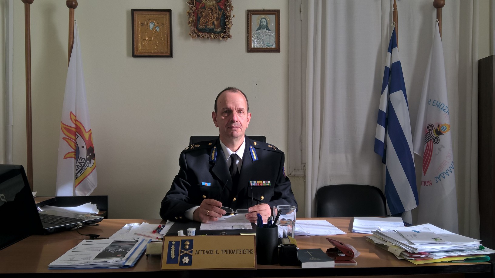 Είμαι βέβαιος ότι όλα τα στελέχη θα συνεχίσουν με τον ίδιο ζήλο να προσφέρουν τις Υπηρεσίες τους στους πολίτες που το έχουν ανάγκη. Τέλος εύχομαι από καρδίας σε όλους τους συναδέλφους προσωπικά, υγεία και δύναμη για την επίτευξη της αποστολής του Π.Σ.