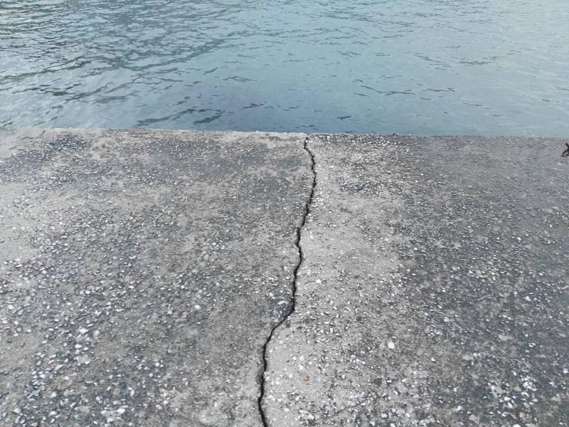 Αποκόλληση τμημάτων πλησίον της προβλήτας ανέλκυσης σκαφών στο παραλιακό μέτωπο του Κινίου διαπιστώνεται καθ΄ όλη τη διάρκεια των τελευταίων ετών με την κατάσταση του χερσαίου τμήματος να δείχνει πως “επιδεινώνεται” και την επιφάνειά του να φαίνεται πως “σπάει” σταδιακά.