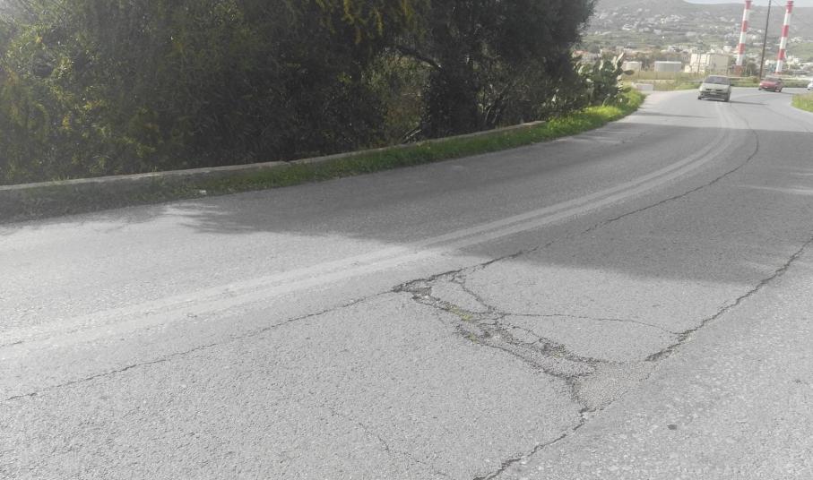 Τα κυριότερα εξ αυτών, όπως διαπιστώνονται κατά τη διέλευση οχημάτων και δικύκλων, παρατηρούνται κατά κύριο λόγο στην κατεύθυνση προς Μάννα – Ερμούπολη και αφορούν σε αποκόλληση τμημάτων της ασφάλτου, λακκούβες και ανομοιομορφίες της επιφάνειάς του, ενώ σε μεγάλα τμήματα του δρόμου διακρίνονται “σπασίματα”.